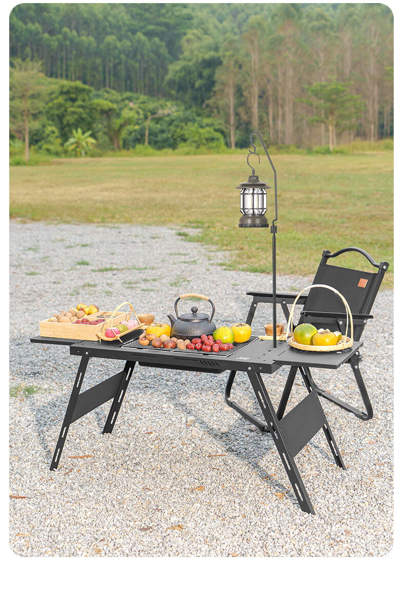 JEEP户外露营液压折叠战术桌igt速开多功能便携式野餐烧烤野炊折叠桌 【烧烤套件】液压战术桌+烧烤桌(送收纳包+灯架)
