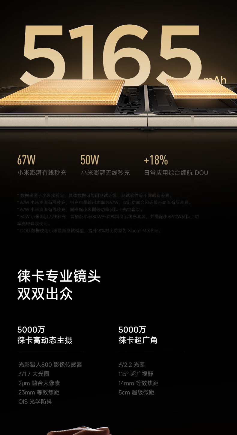 小米(MI)MIX Flip 小折叠屏 4.01英寸超大外屏 第三代骁龙8 16GB+1TB 白色