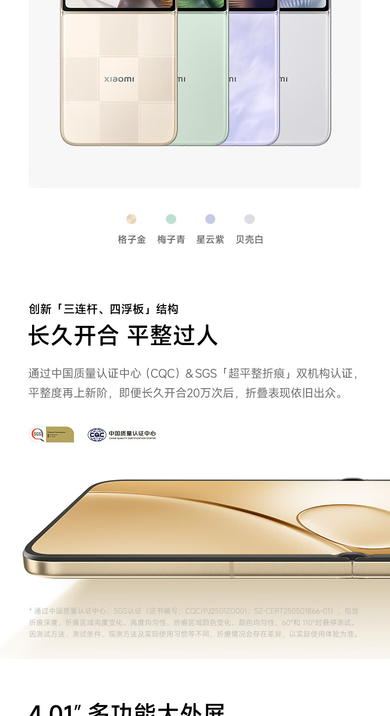 小米(MI)小米MIX Flip小折叠屏手机 补贴 4.01英寸多功能大外屏MIX Flip 2 MIX Flip 2【格子金】 12G+256G 赠运费险|详情咨询客服