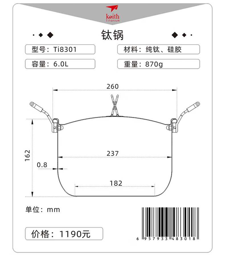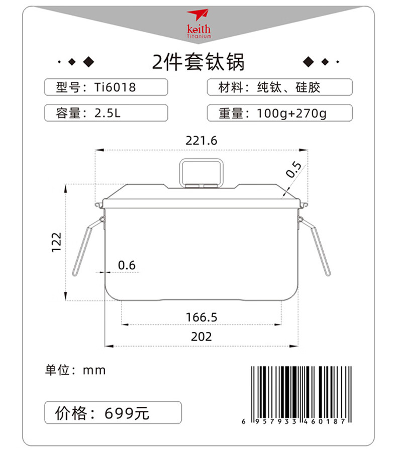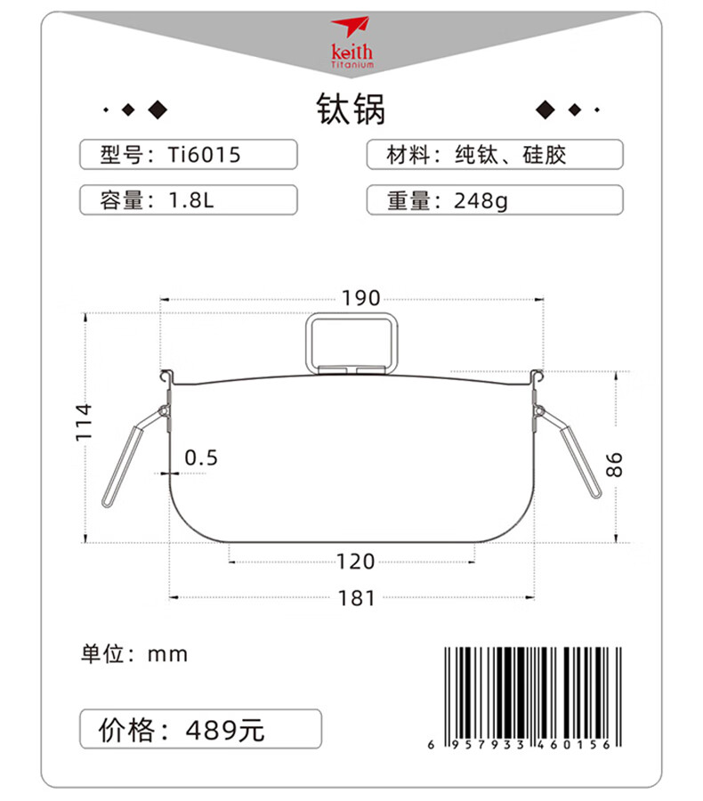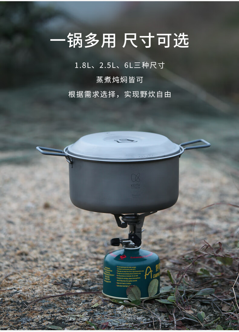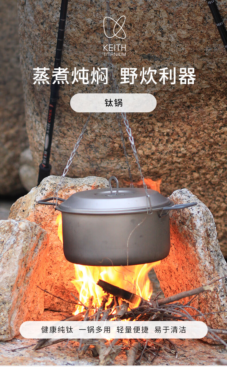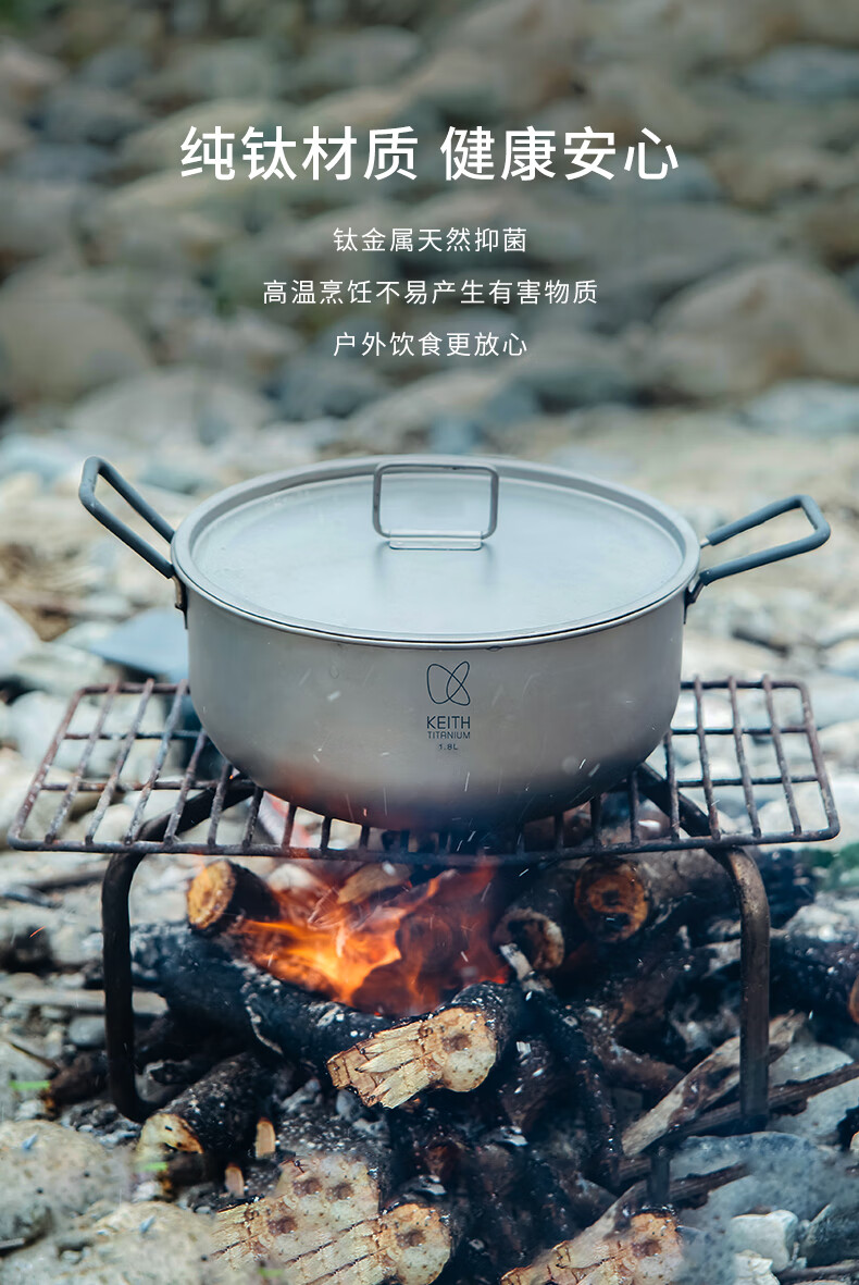铠斯(KEITH)纯钛锅汤锅炖锅野营锅钛锅野炊锅居家户外便携汤锅轻质便携煮饭锅 Ti6018汤锅 约2.5L