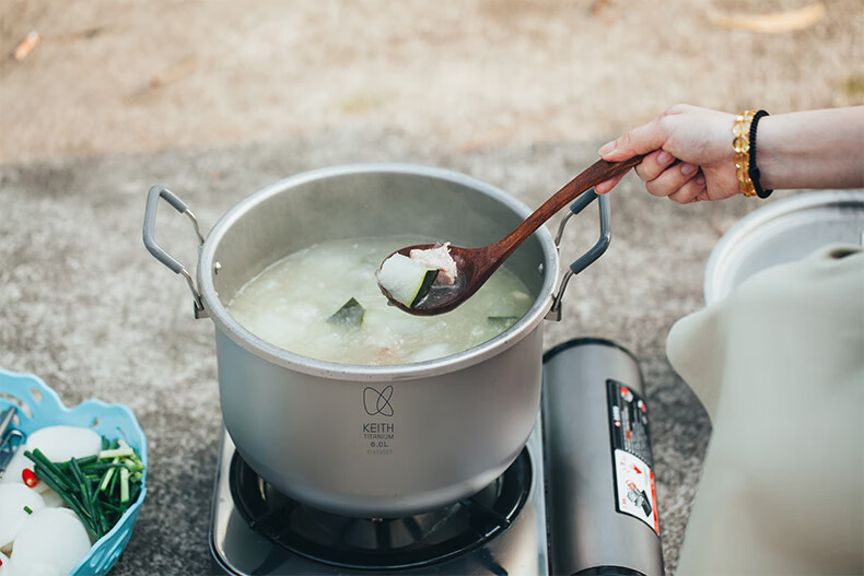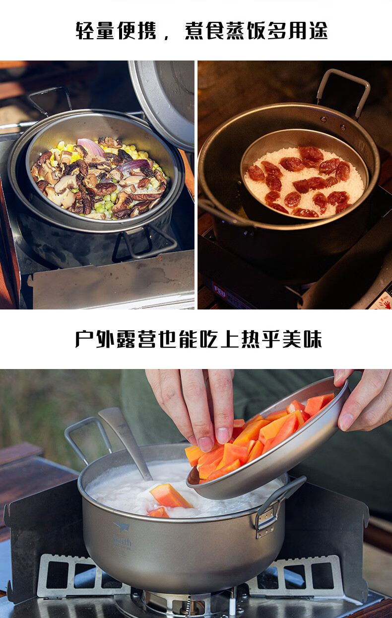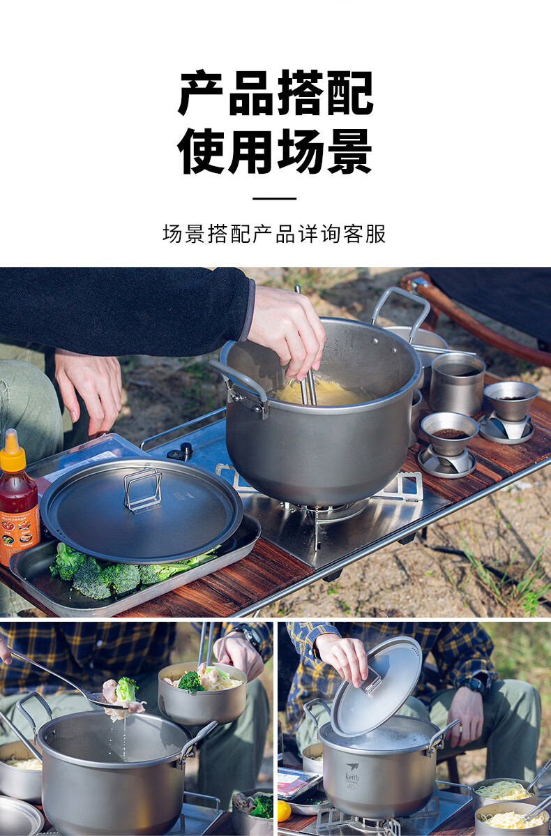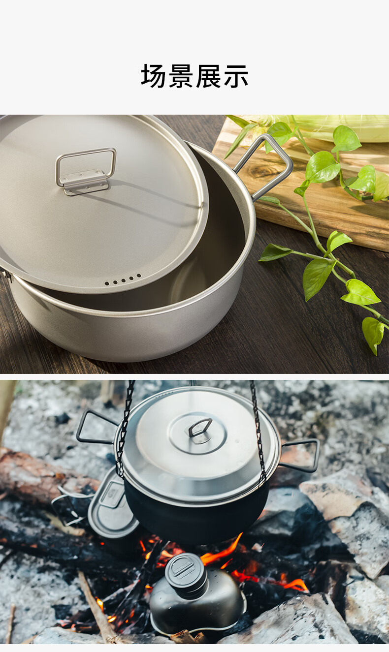 适用场景:户外,比较轻巧,都是可折叠的拉手和把手 产品做工:产品做工还算精细 适用人数:可以做四个人的一顿汤 我主要拿来做卤味,就因为钛合金比较耐腐蚀,对卤味比较友好