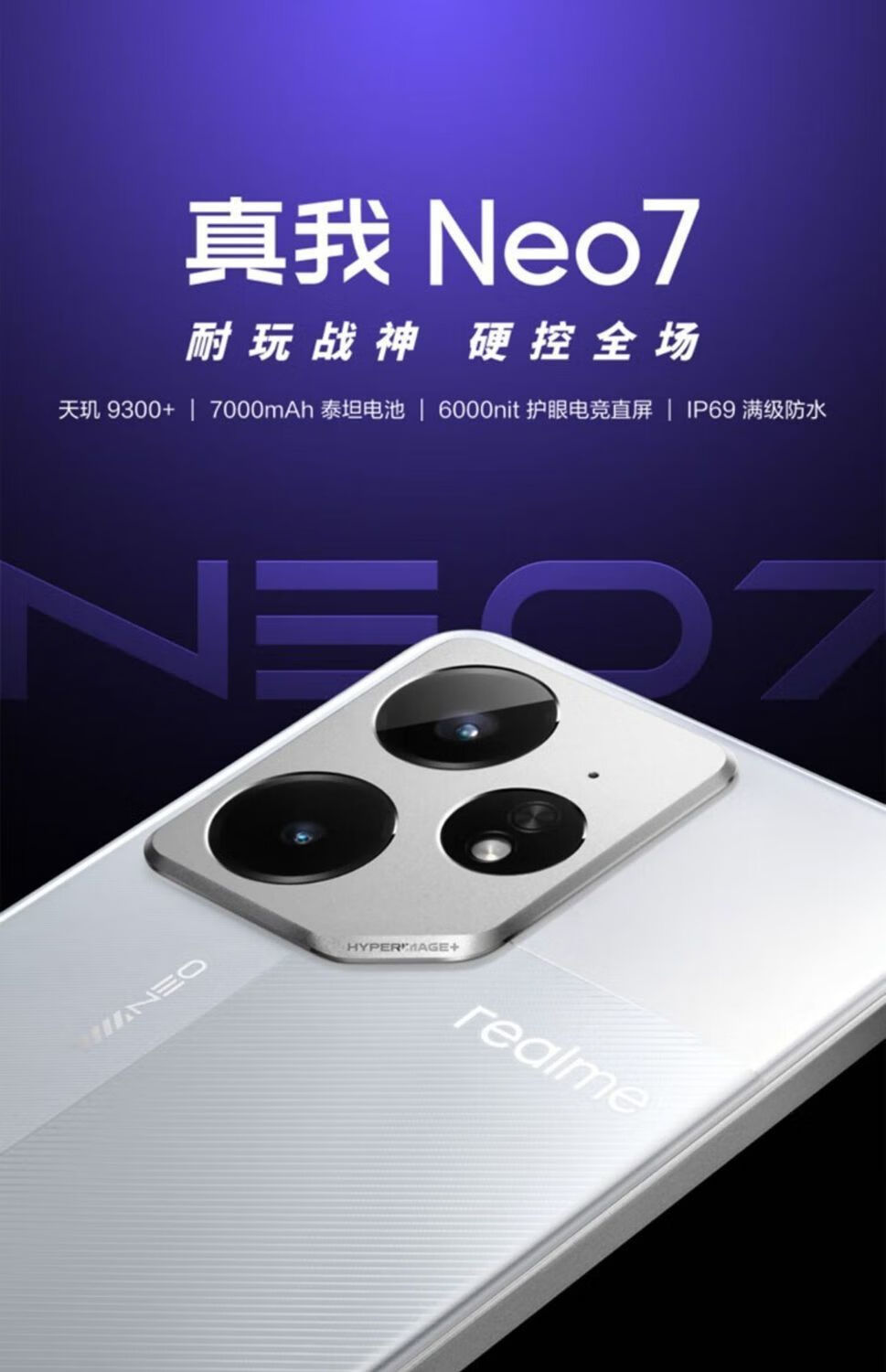 真我(realme)展机Neo7电竞天玑9300+智能游戏拍照手机旗舰芯7000mAh泰坦电池 星舰 12GB+256GB 单机+品牌快充+质保一年