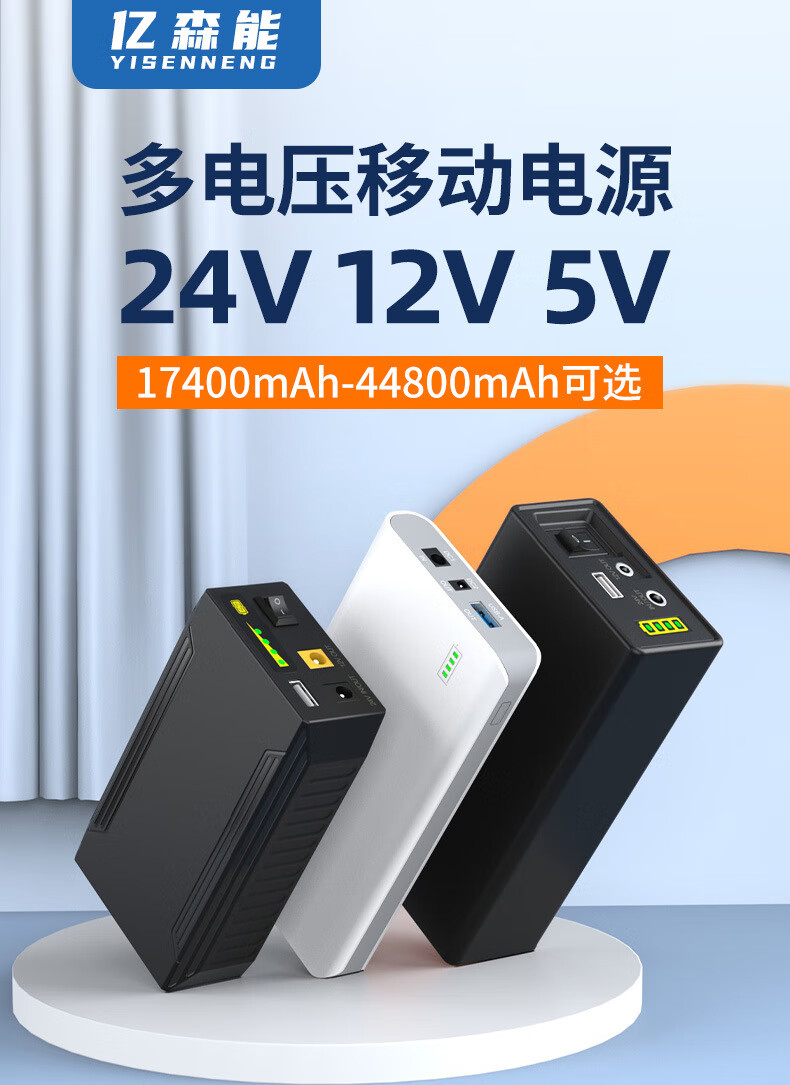 YI SEN NENG24V12V5V双DC三输出锂电池组便携大容量户外移动可充电源音箱灯带 24V12V5V(44800mAh)双DC带开关电显