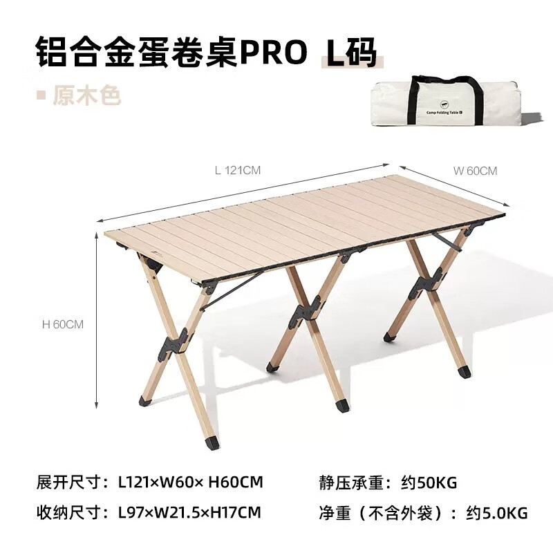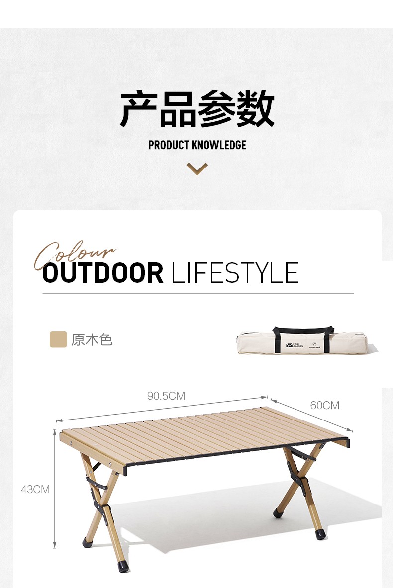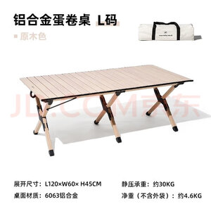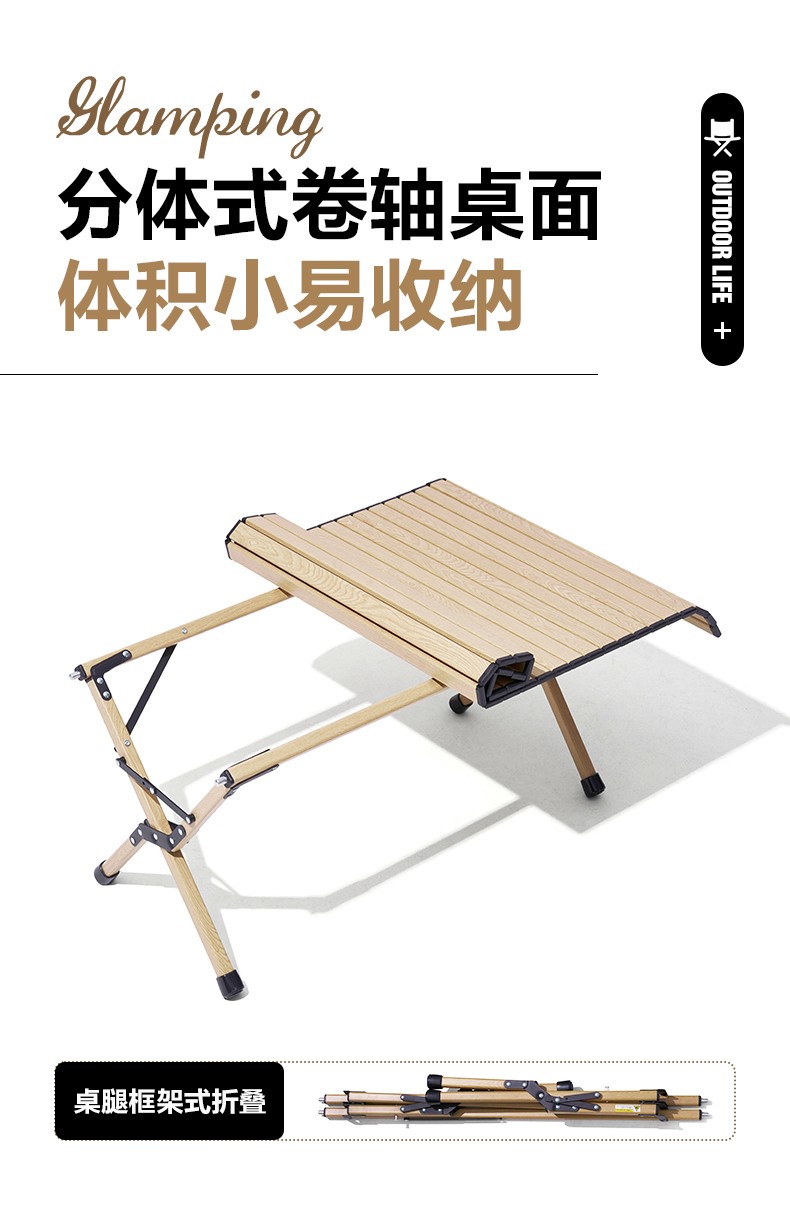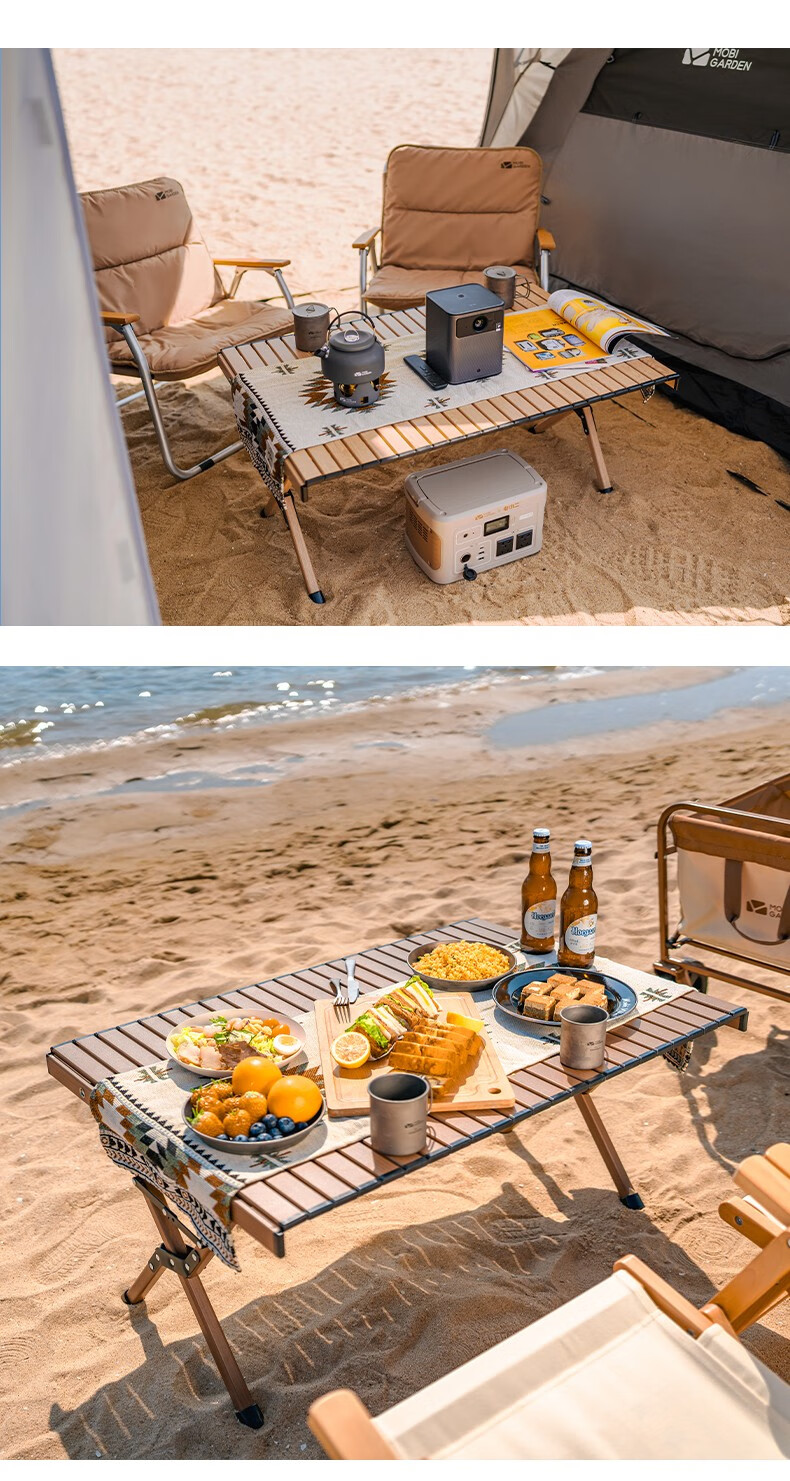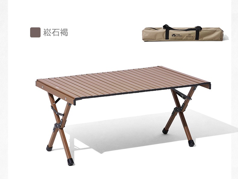 牧高笛(MOBIGARDEN)折叠蛋卷桌户外露营铝合金超轻便携式野营野餐桌子山享 原木色M