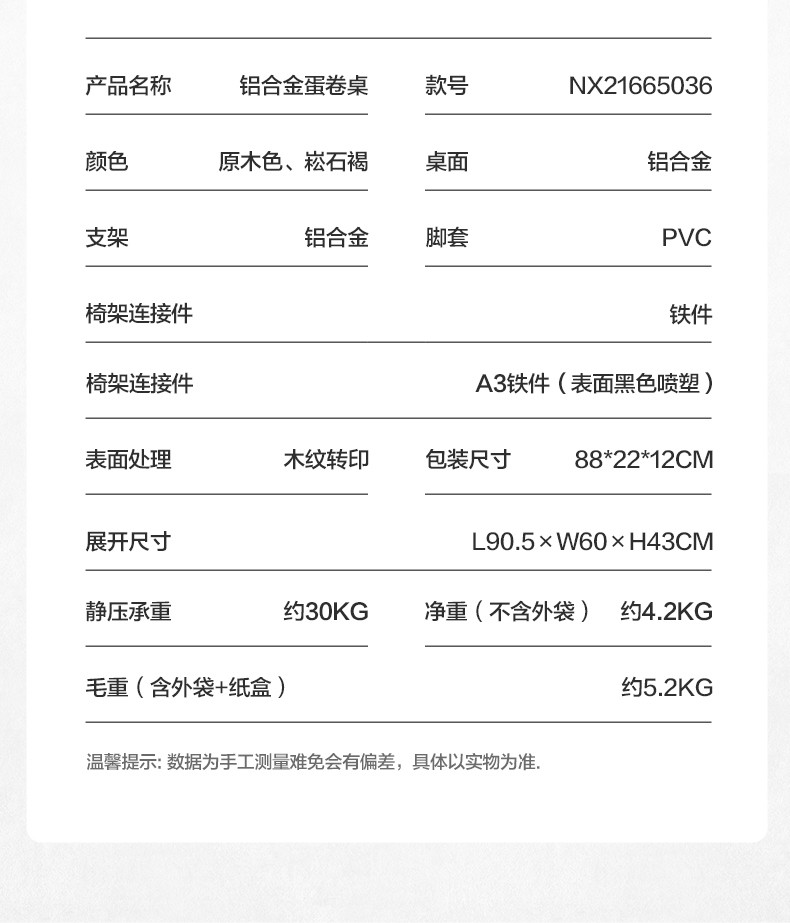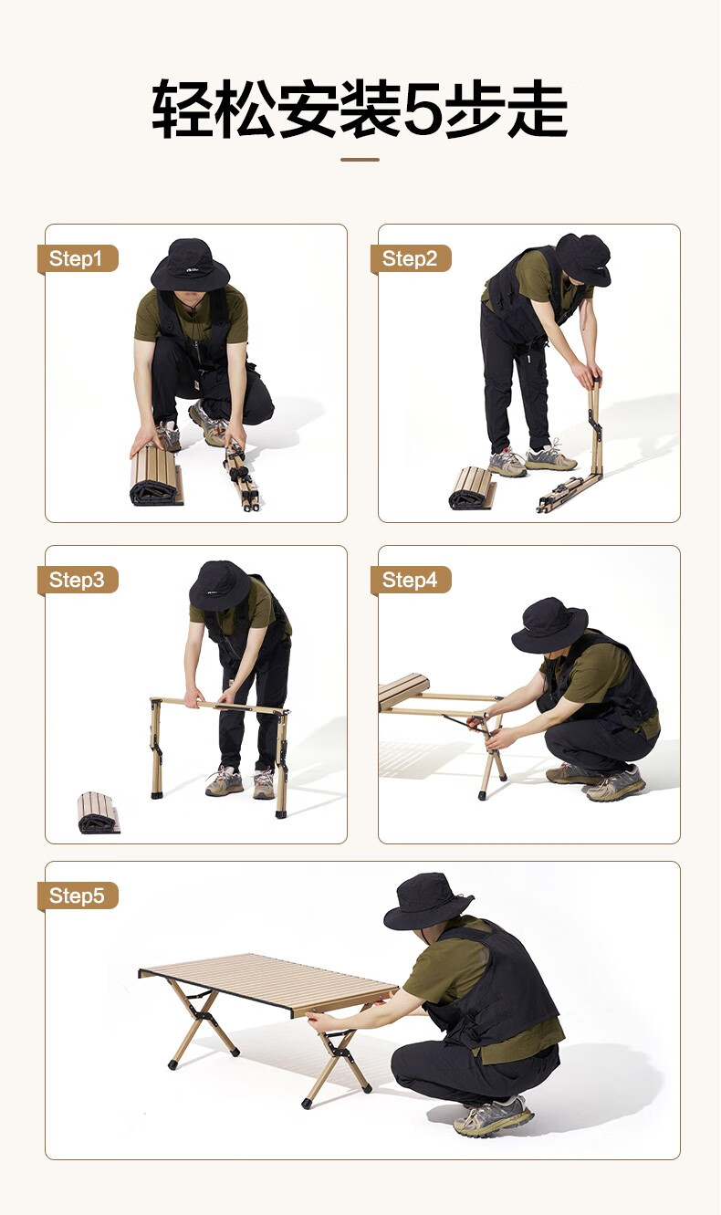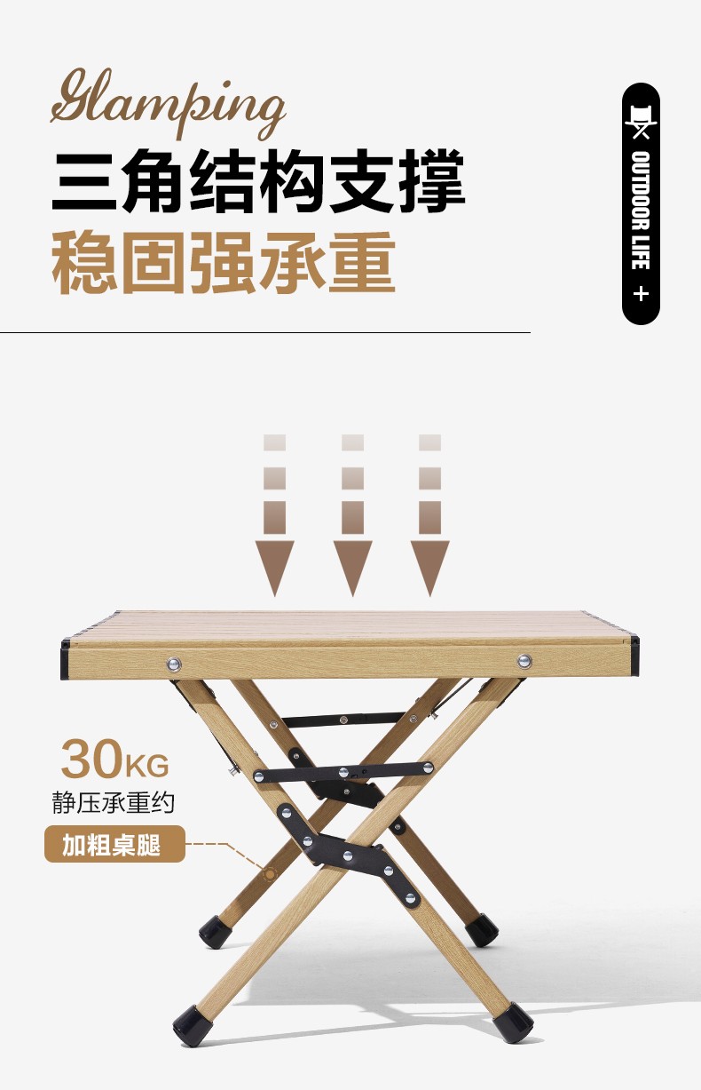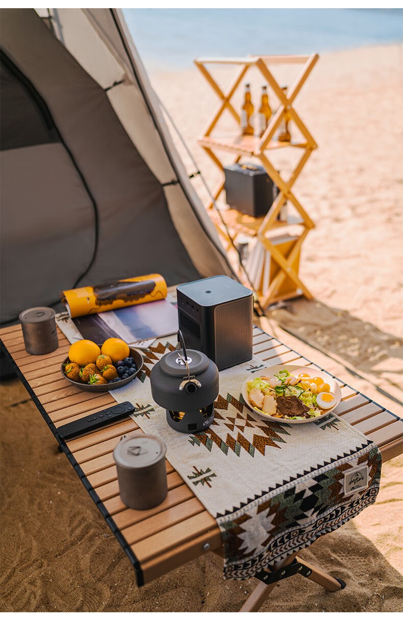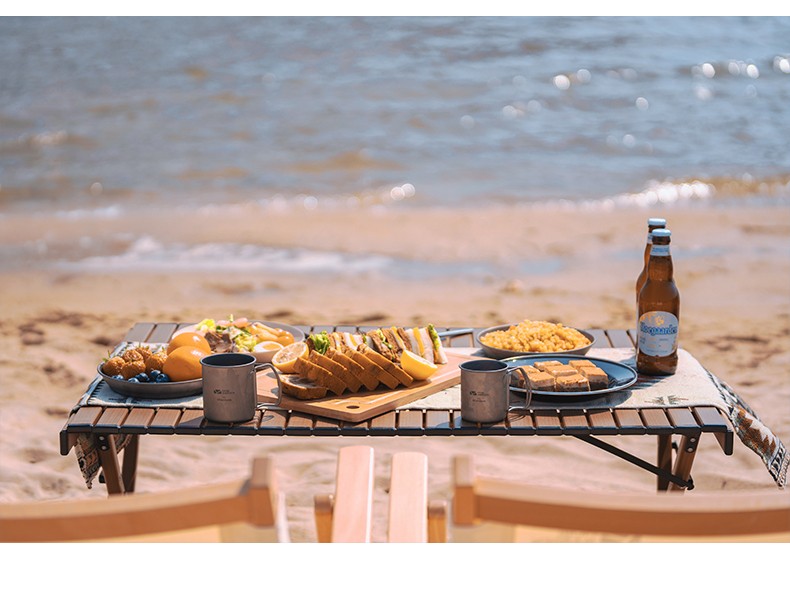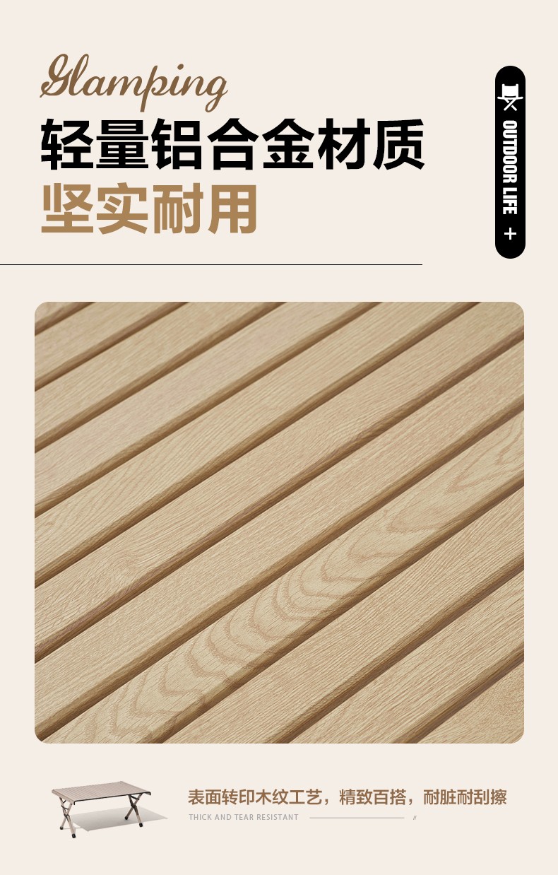 牧高笛(MOBIGARDEN)折叠蛋卷桌户外露营铝合金超轻便携式野营野餐桌子山享 原木色M
