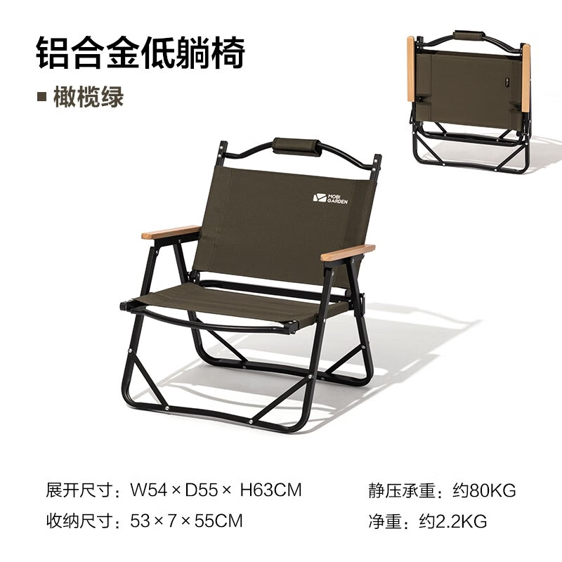 NatureHike挪客 户外便携折叠椅子 野餐露营铝合金休闲椅 靠背钓鱼凳子 卡其