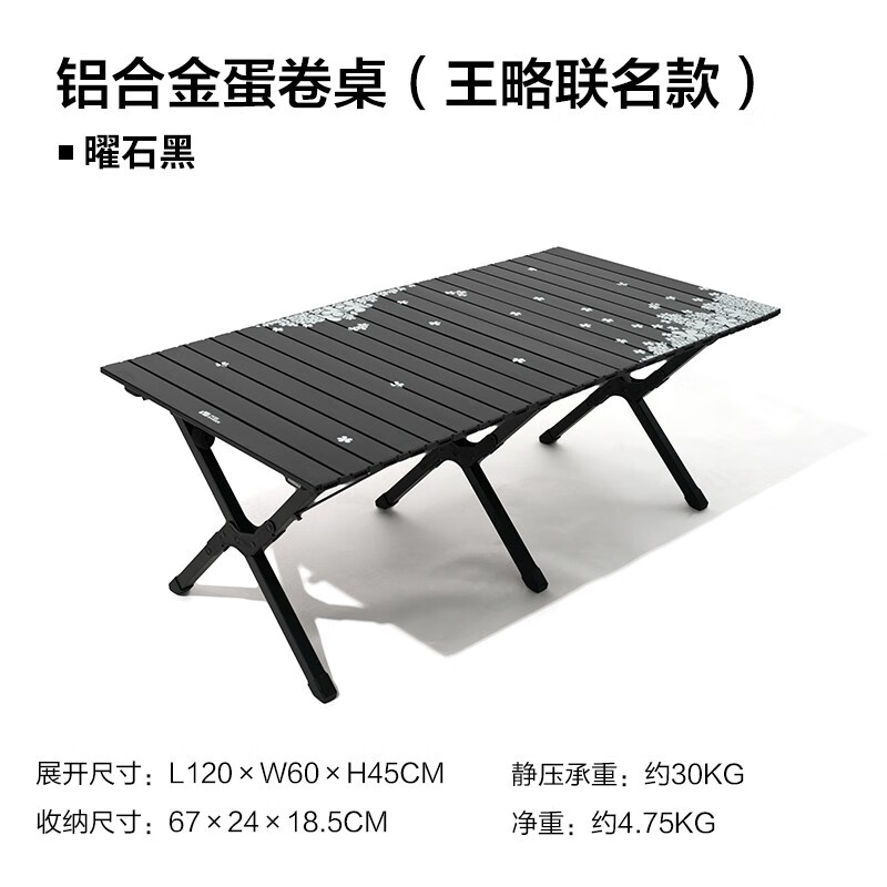 牧高笛(MOBIGARDEN) 铝合金蛋卷桌 户外露营便携式餐桌轻量可折叠山涧 铝合金蛋卷桌-曜石黑M
