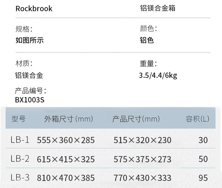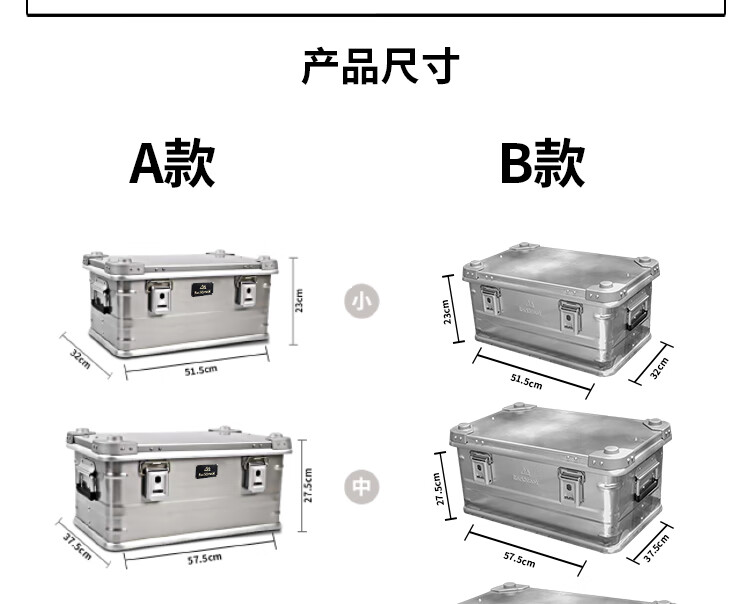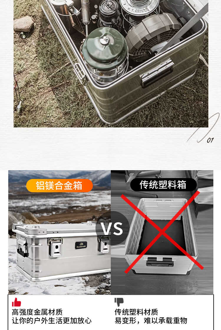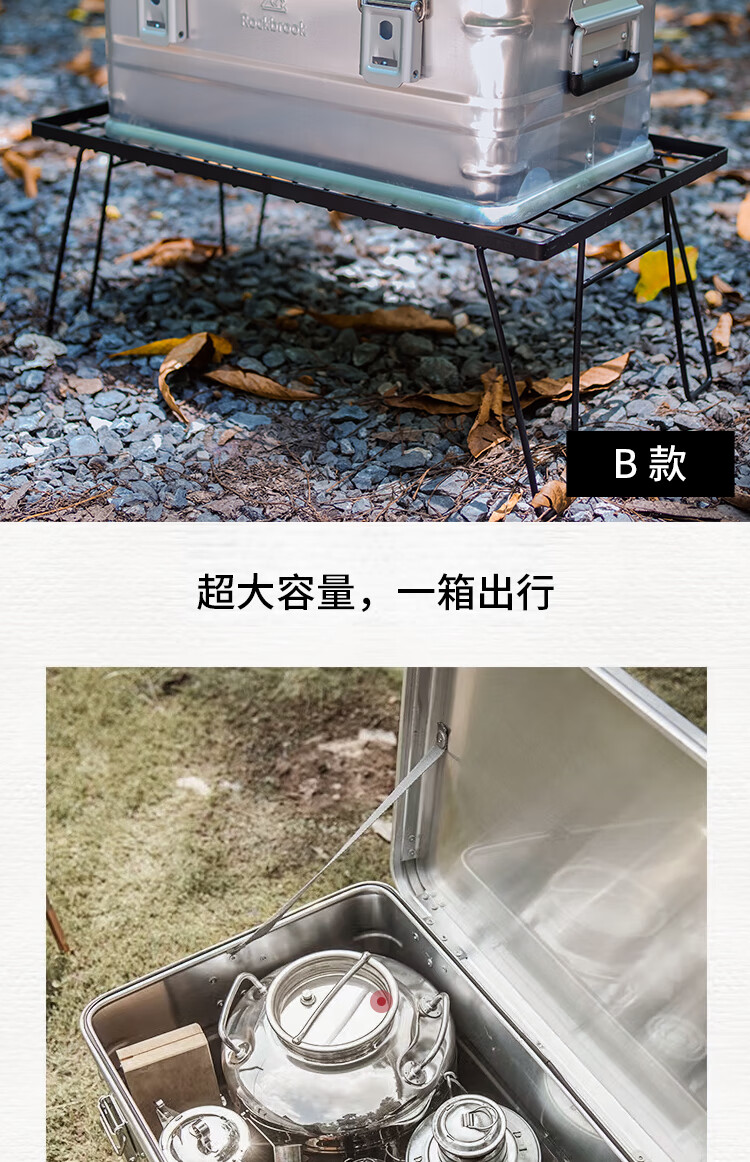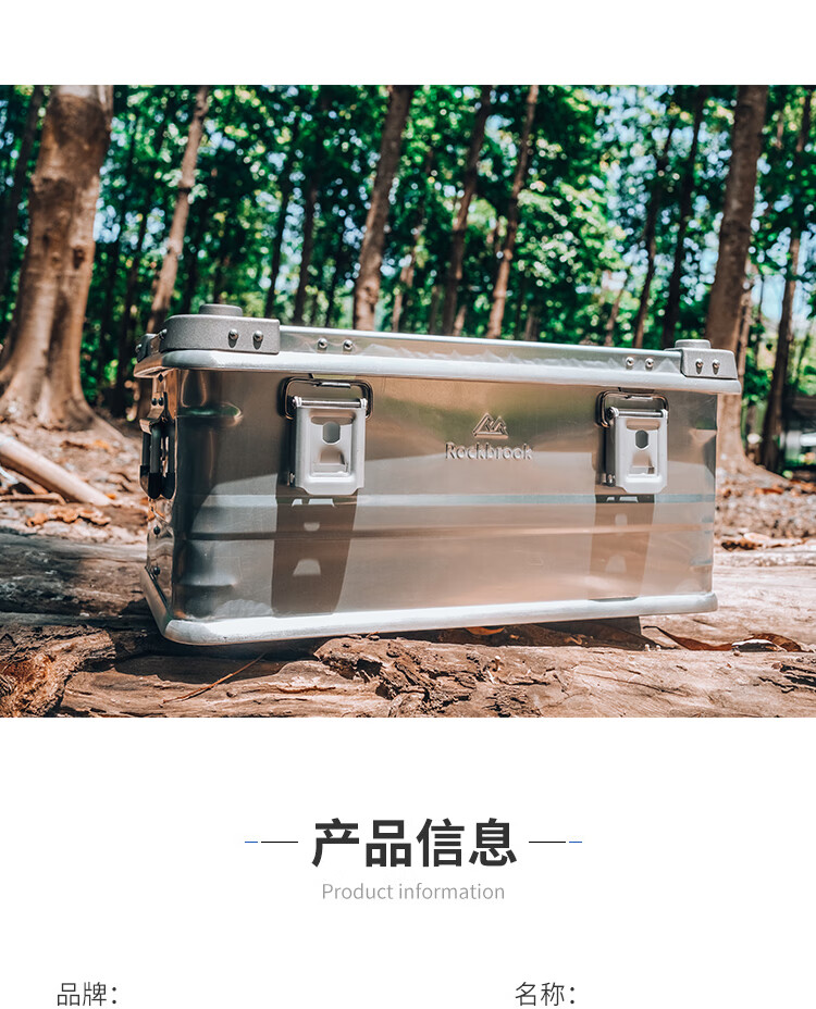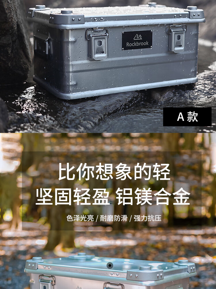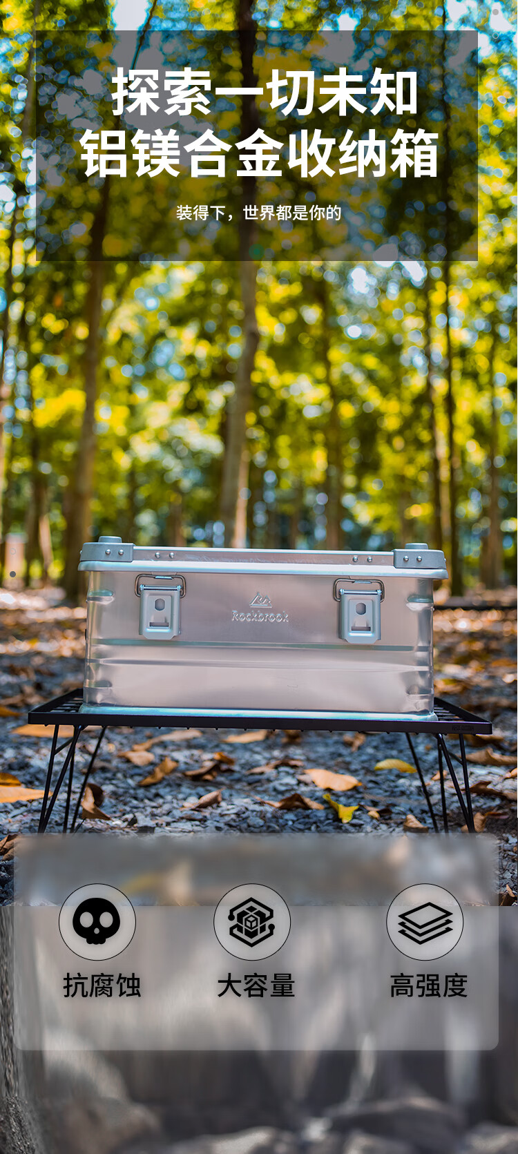 ROCKBROOK鹿布户外铝镁合金收纳箱车载防水整理箱露营桌面金属储物箱|战盾 战盾铝镁合金箱【50L】