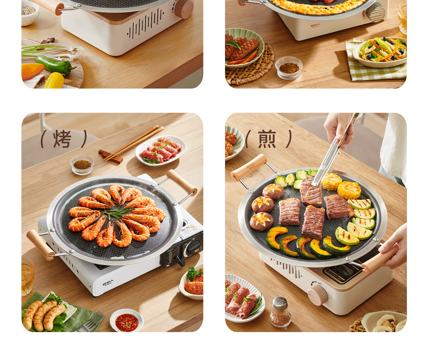 原始人(The Primitive)不锈钢烤肉盘蜂窝不沾烤盘烧烤盘家用无烟户外卡式炉圆形燃气灶 【特厚加大号凸面款】316不锈钢