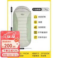 原始人睡袋户外露营可机洗隔脏抗菌双人冬季加厚保暖防寒成人睡袋 2.3KG牛油果绿【适合-10℃】