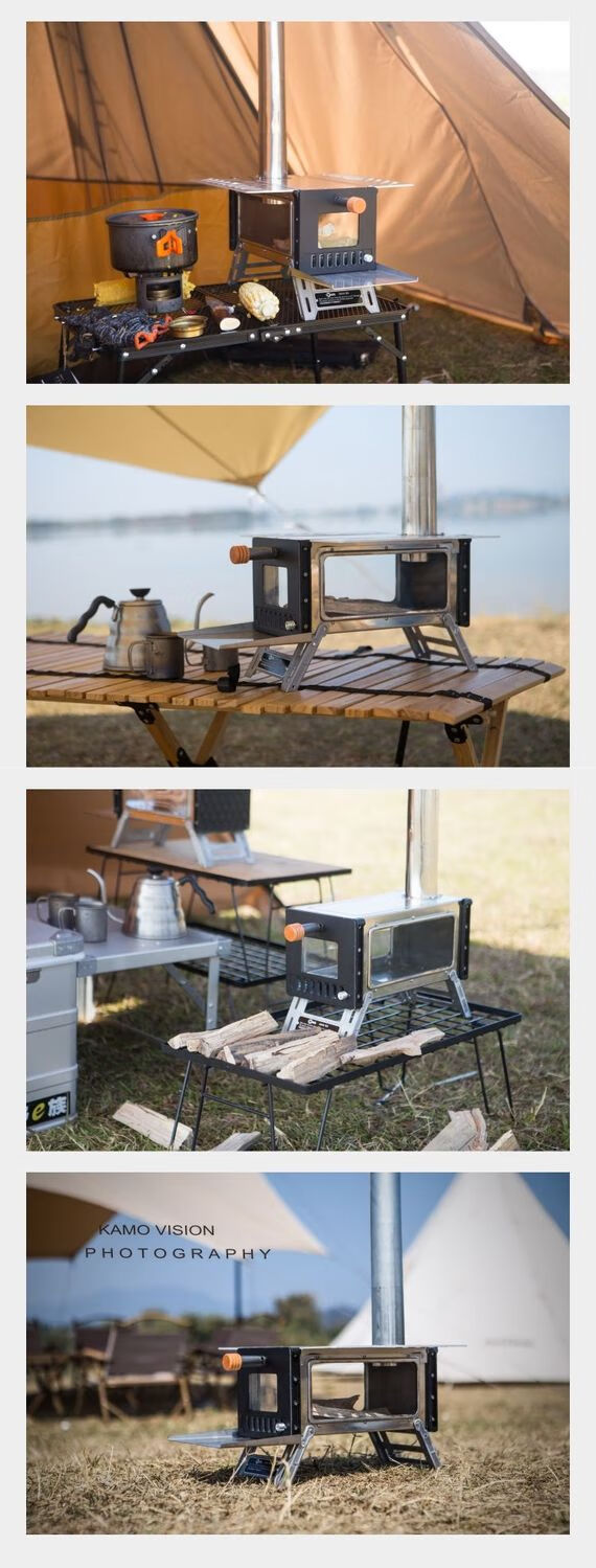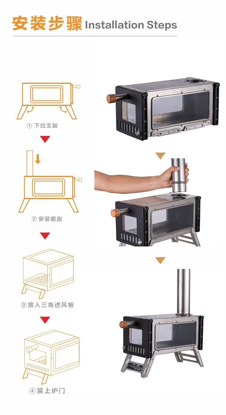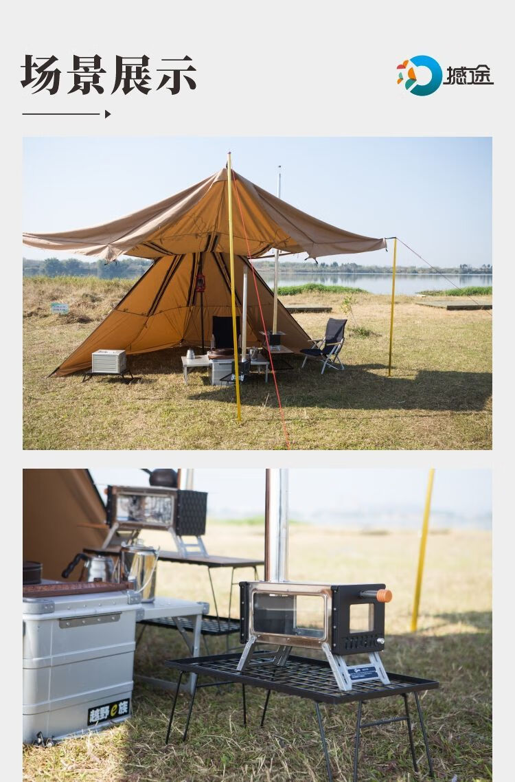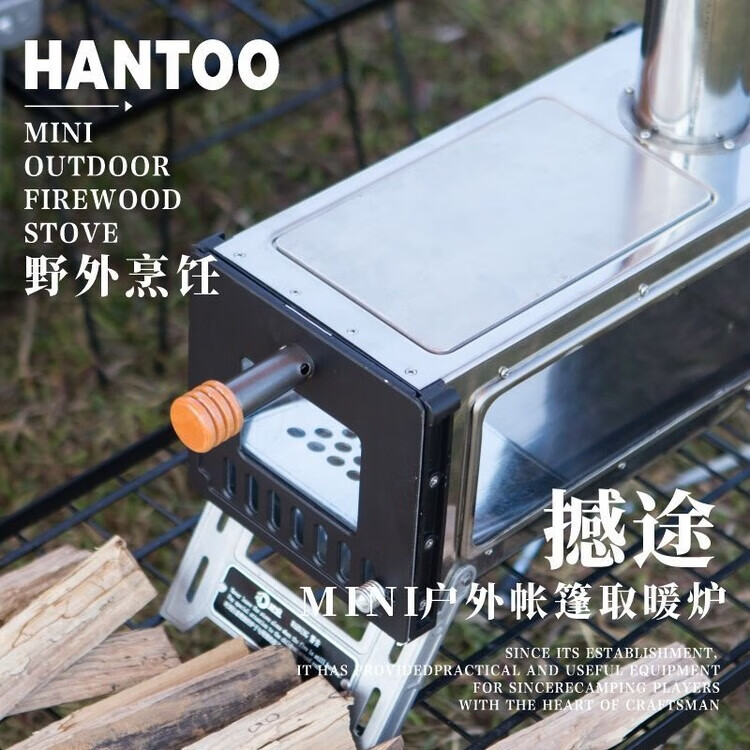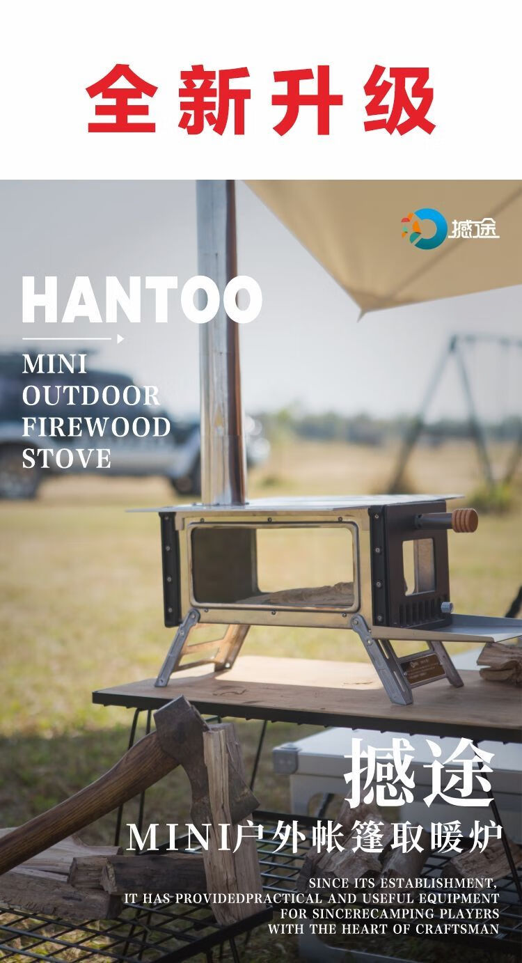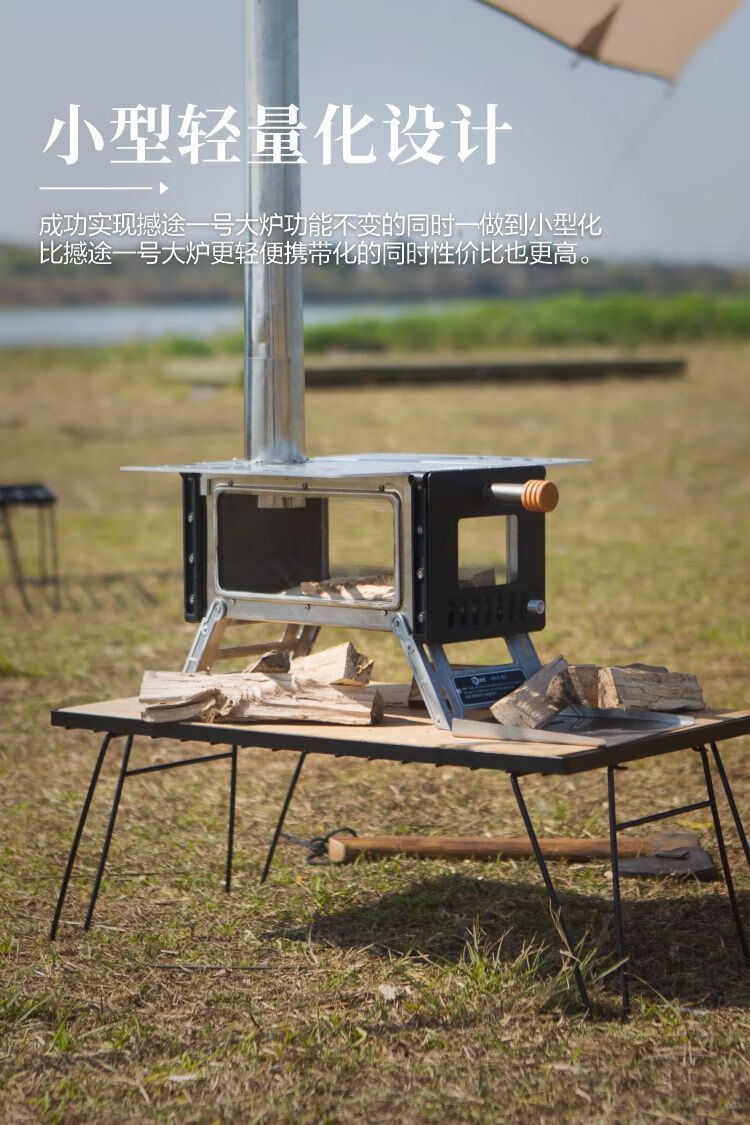 撼途(HANTU)双侧窗冬季迷你柴火炉户外露营便携取暖炉多功能长方形轻便 【四节套管烟囱版】含炉体