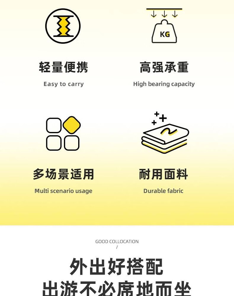 OIMG便携户外露营折叠椅子笔袋折叠迷你小马扎钓鱼凳多功能小板凳地铁 承重260KG,升级款,米色小马扎
