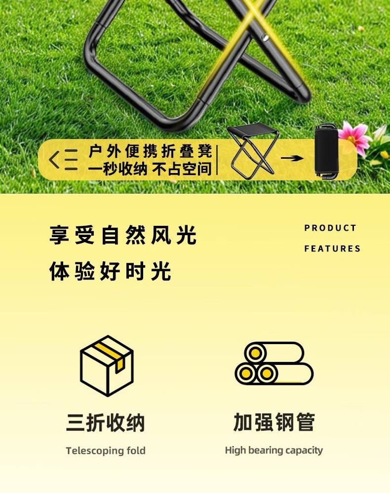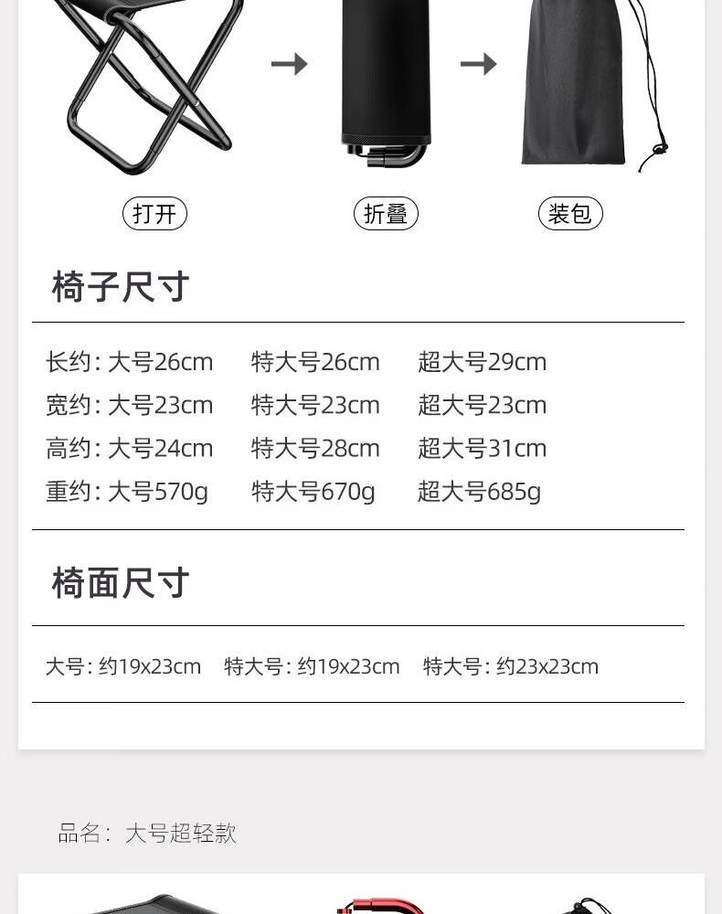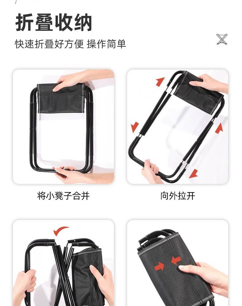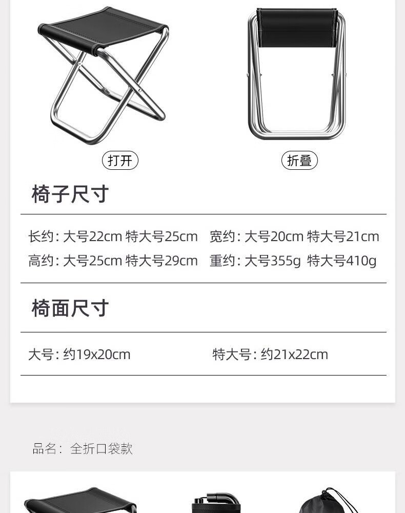 探路鸽户外折叠凳子便携马扎旅游露营钓鱼折叠小凳子凳火车地铁排队神器 【半折叠款】黑色大号
