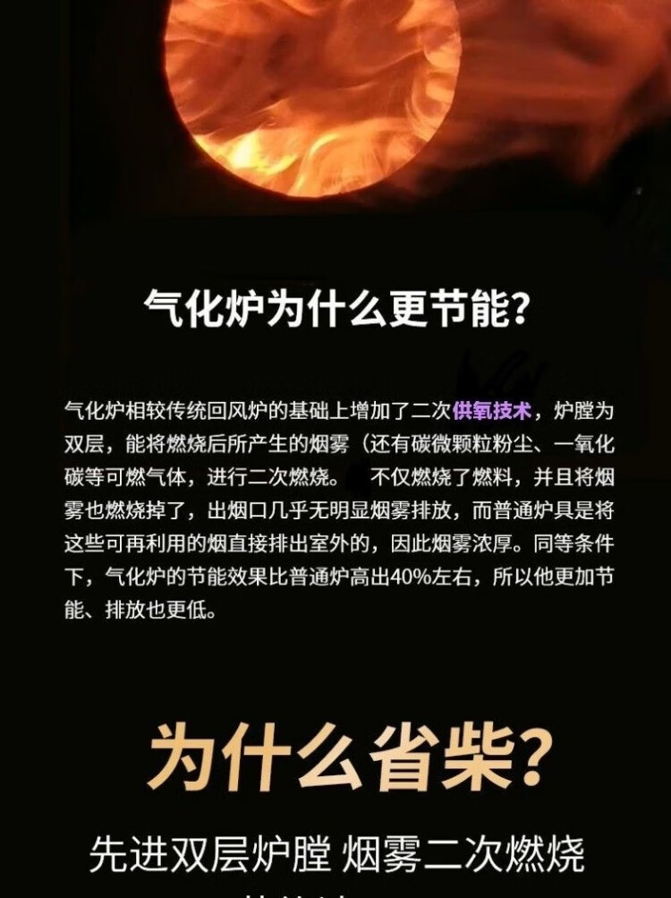 其他家农村农家庭院家用取暖节能气化特厚观火无烟藏式柴火炉柴火灶壁炉 大号三面观火