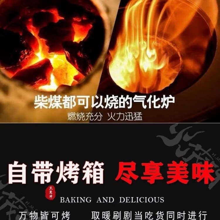 升级火茂冲柴煤两用长方形面气化炉子家用气化炉农村无烟炉子炉灶 1.2x0.75米大烤箱红黑边玉阑飘香 火茂冲经典款回火式反烧气化炉
