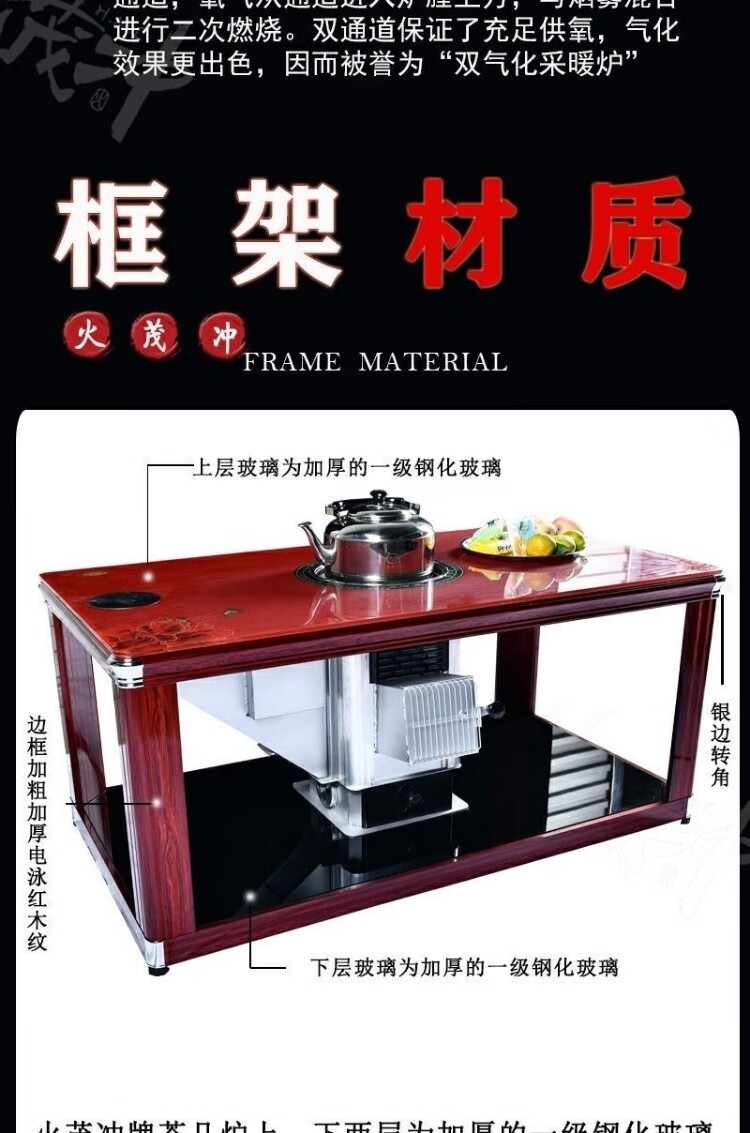 古慕妮升级款火茂冲柴煤两用烤火炉茶几气化炉节能加厚长方形多功 升级款红黑边玉阑飘香+红框