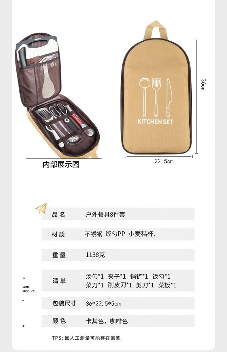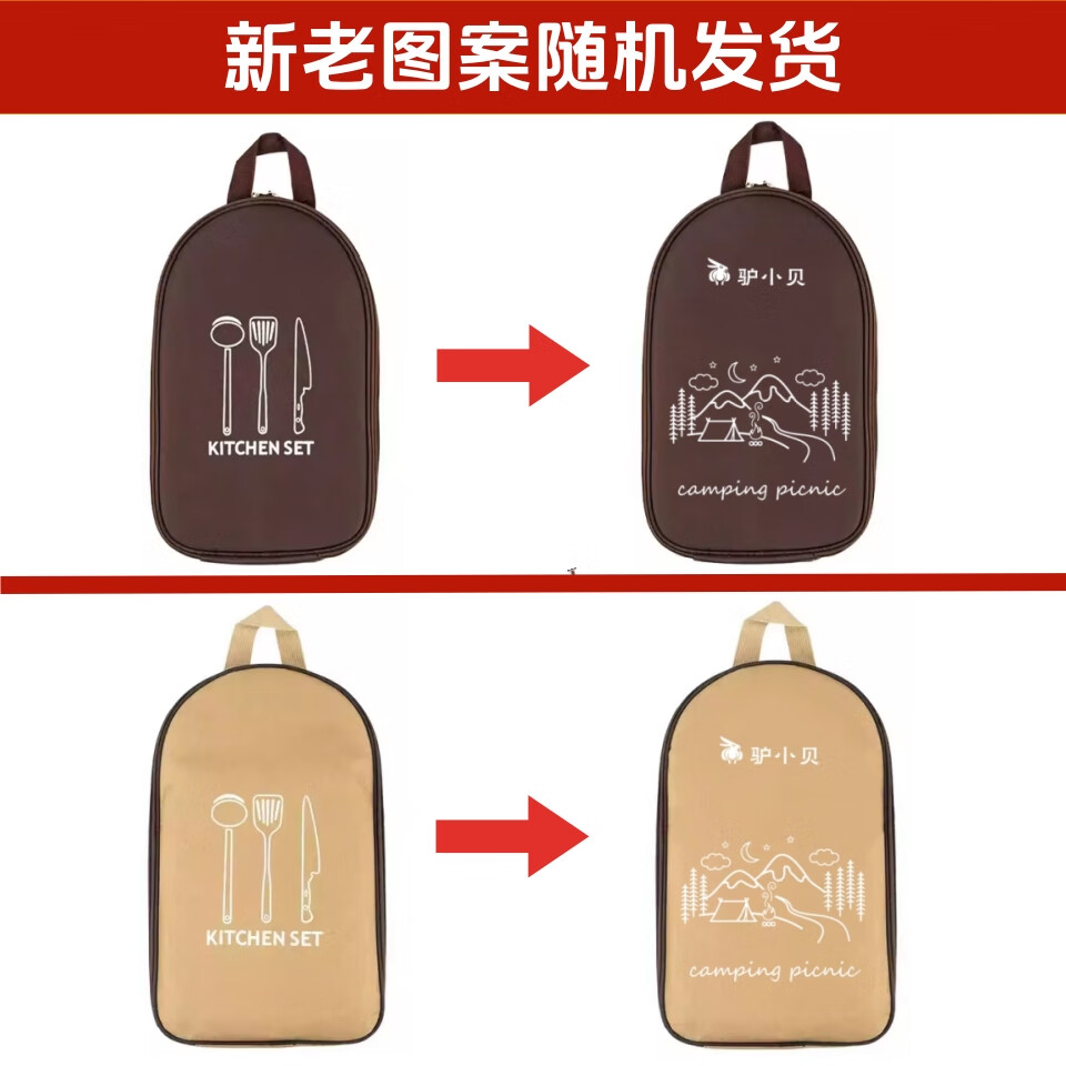 驴小贝户外露营餐具收纳包便携式不锈钢厨具套装野营野餐炊具装备 升级大菜板5件套卡其包