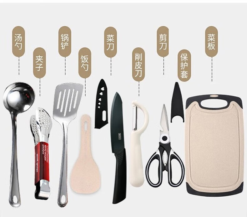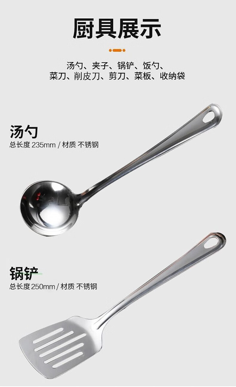户外刀具套装露营野炊菜刀菜板硅胶锅铲勺夹子剪刀组合 户外刀具套装七件套