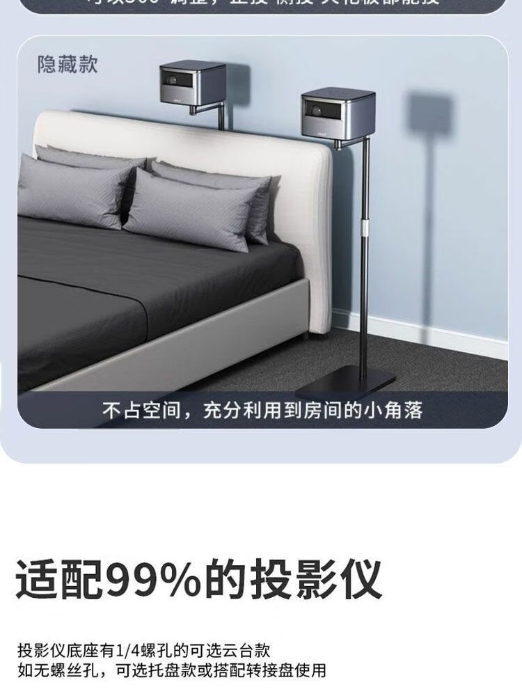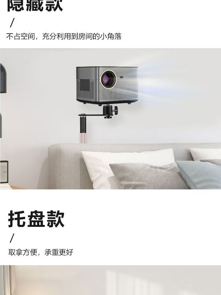 Rigal投影仪家用支架嵌入式隐藏床头桌面两用靠墙托盘云台置物架免打孔适配置物架
