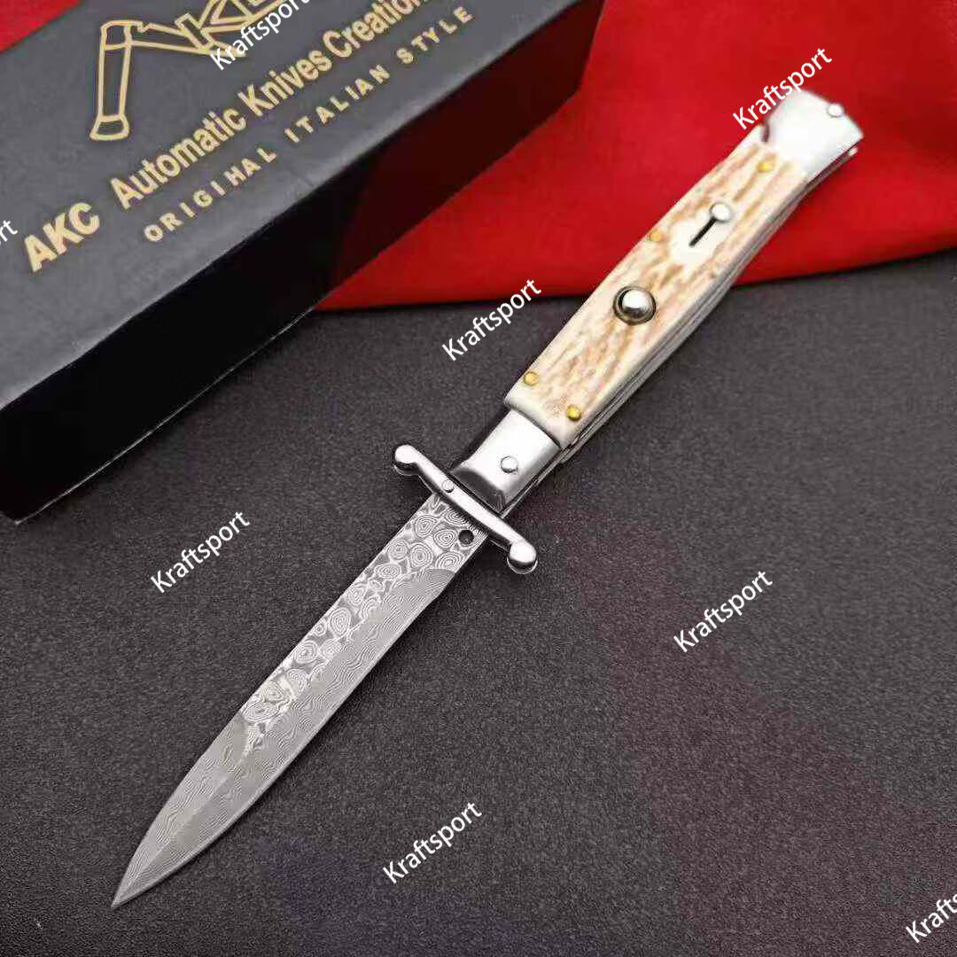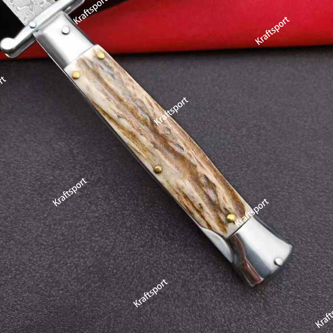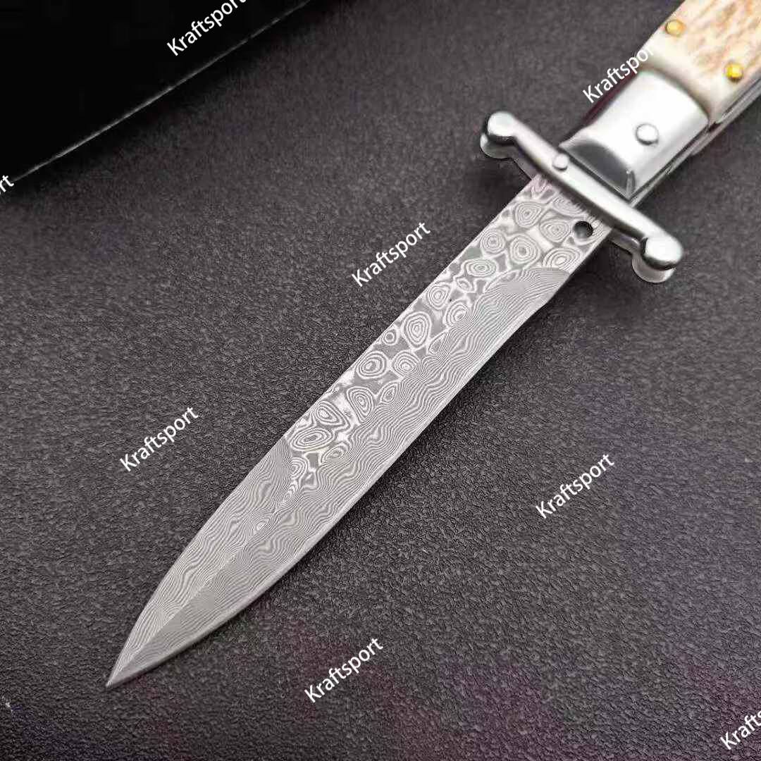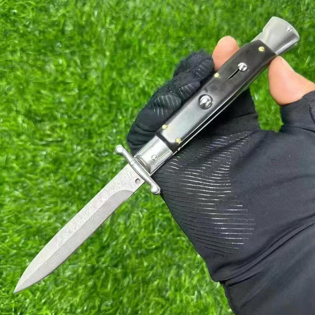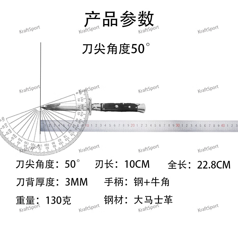意大利黑手党守护神牛角大马士革户外战术快开便携防身水果折刀 守护神镜面刃【牛角黑柄】 刃长10cm-大于50°