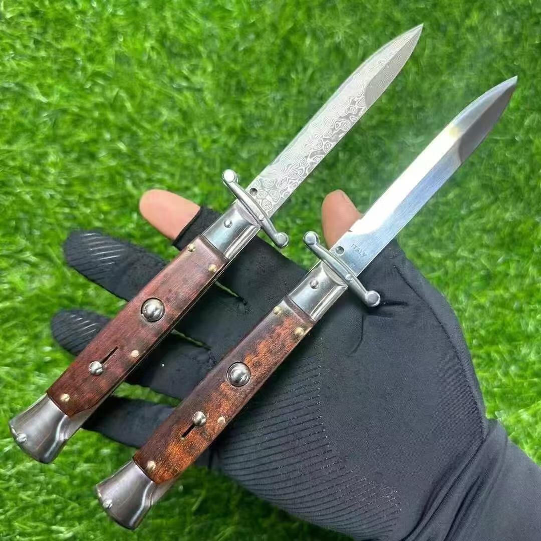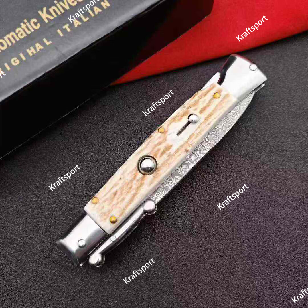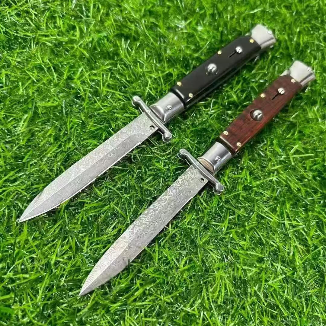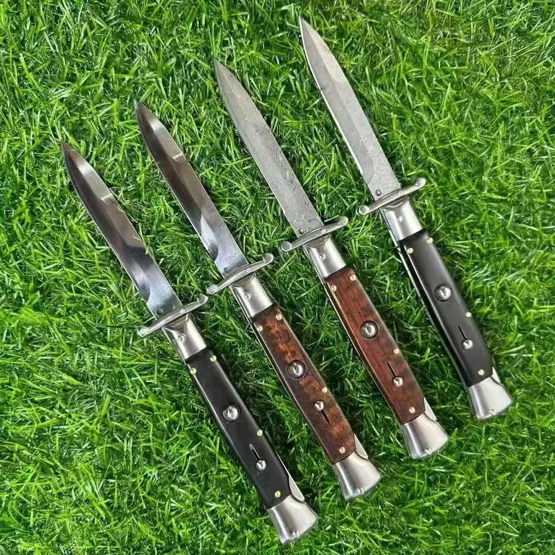 意大利黑手党守护神牛角大马士革户外战术快开便携防身水果折刀 守护神镜面刃【牛角黑柄】 刃长10cm-大于50°