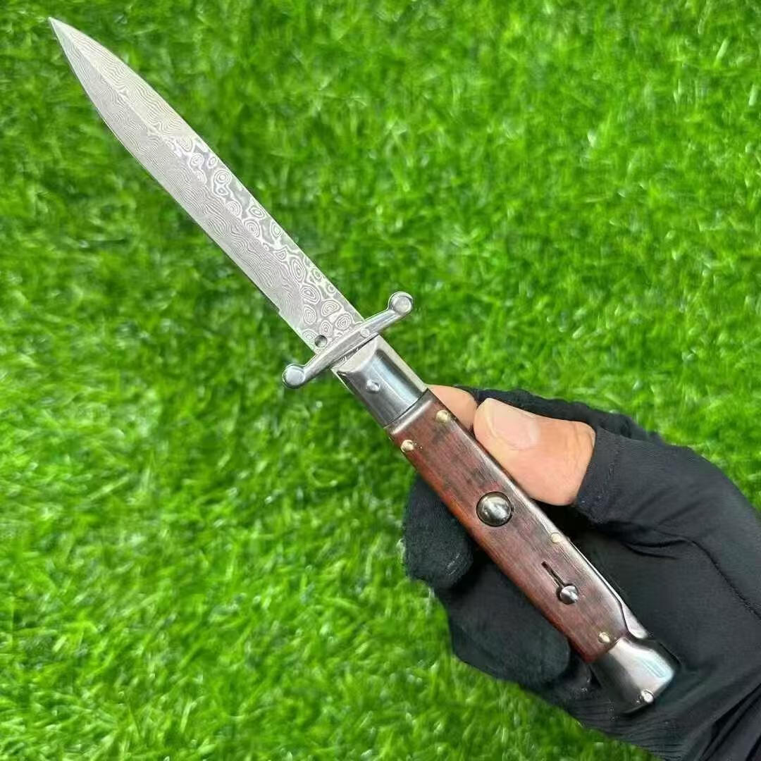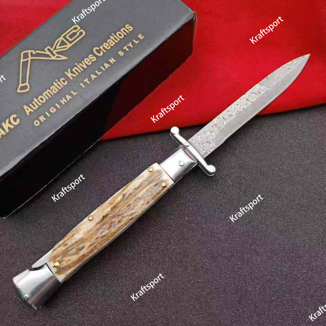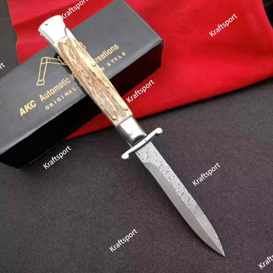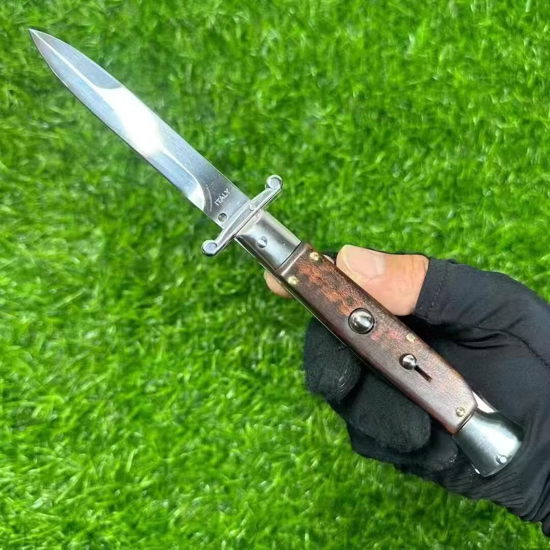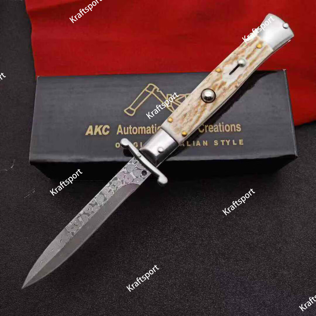 意大利黑手党守护神牛角大马士革户外战术快开便携防身水果折刀 守护神镜面刃【牛角黑柄】 刃长10cm-大于50°