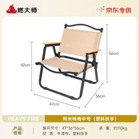 燃大师户外折叠椅子便携式野餐克米特椅超轻钓鱼露营用品装备椅沙滩桌椅 中号卡其色