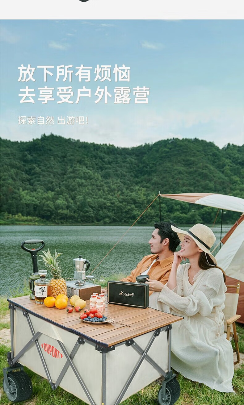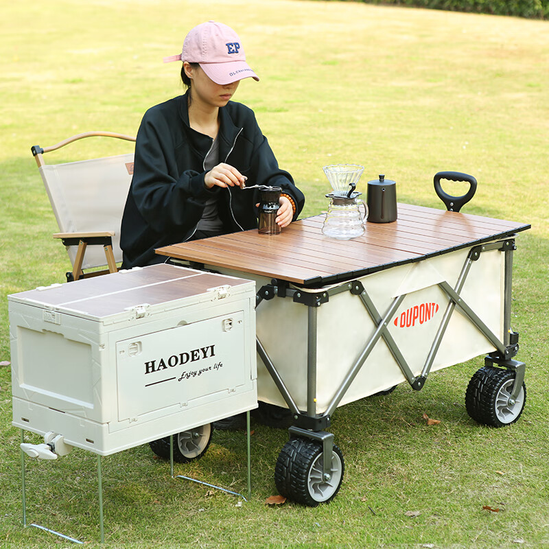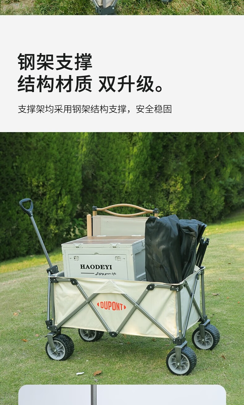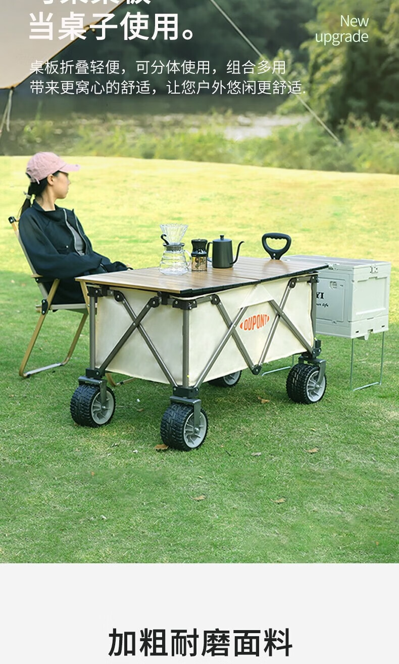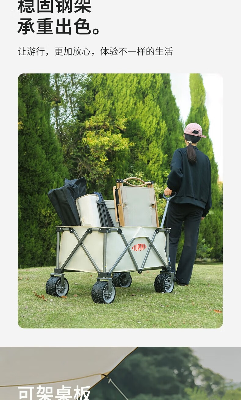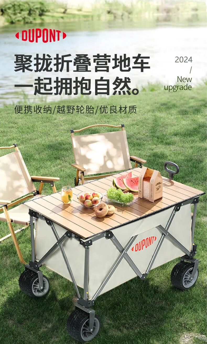 杜邦(DU PONT)户外营地车露营车推车聚拢加宽坦克轮可折叠手拉野餐车摆摊小拖车 300L-营地车【聚拢款】