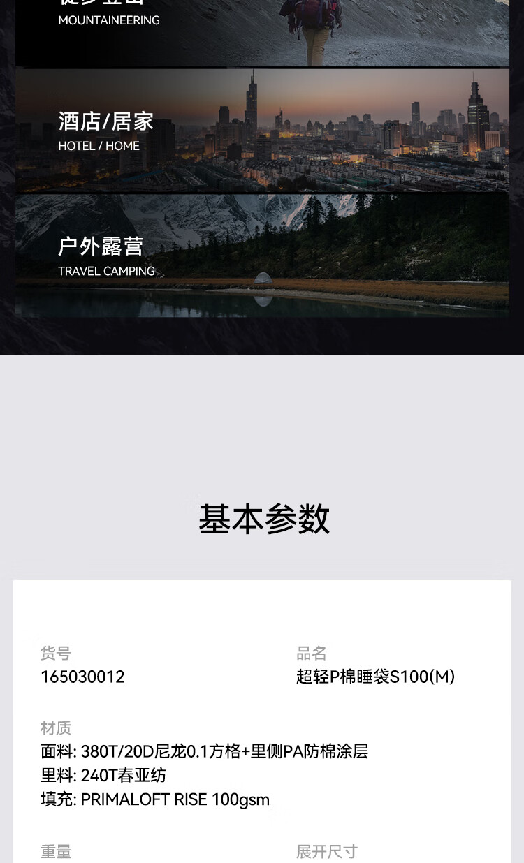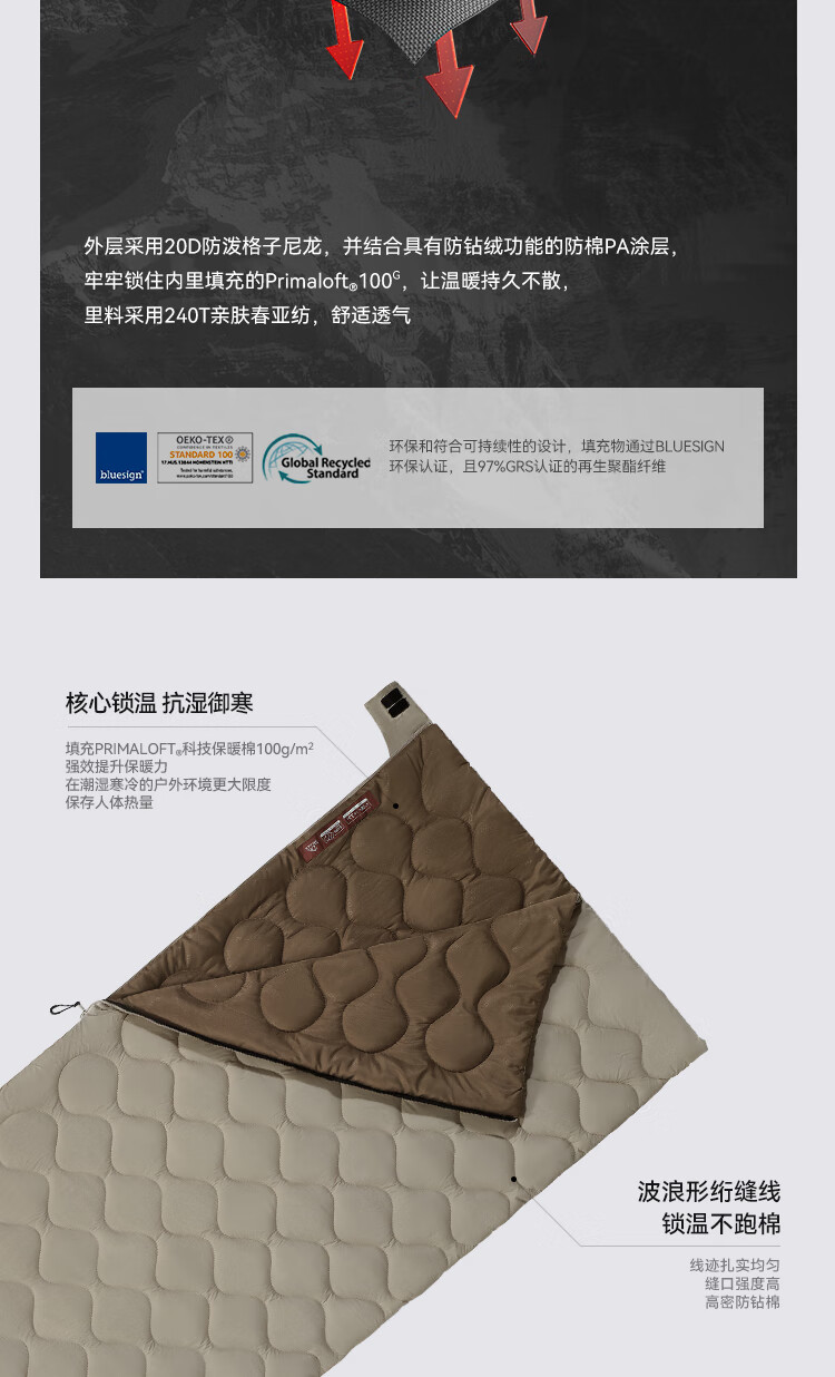 伯希和【云岭】户外睡袋Primaloft Rise系列棉四季通用款便携超轻露营 【雪松绿】Primaloft 聚暖透气