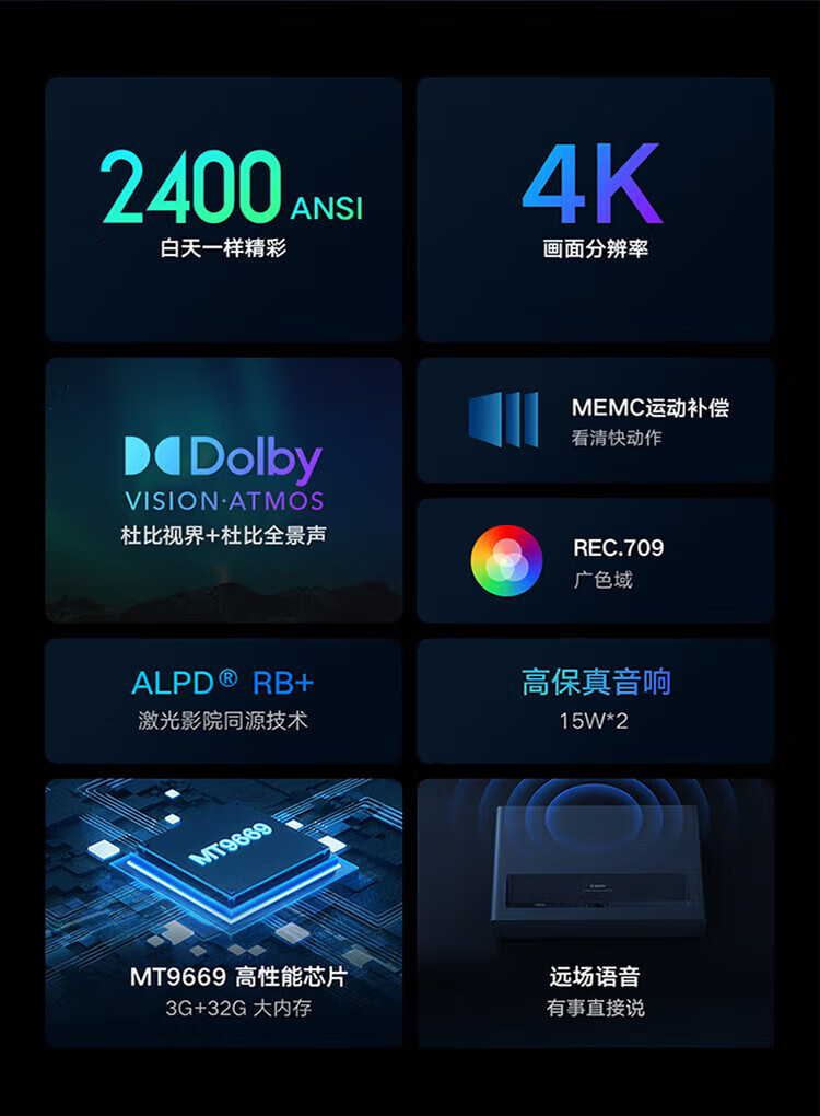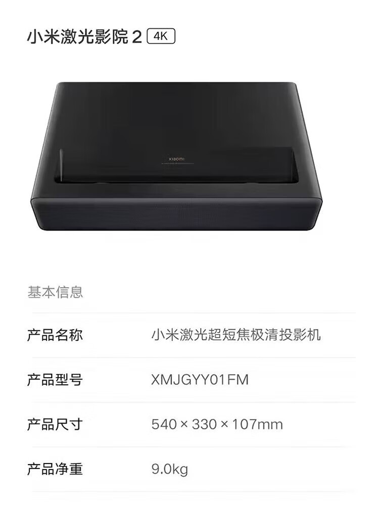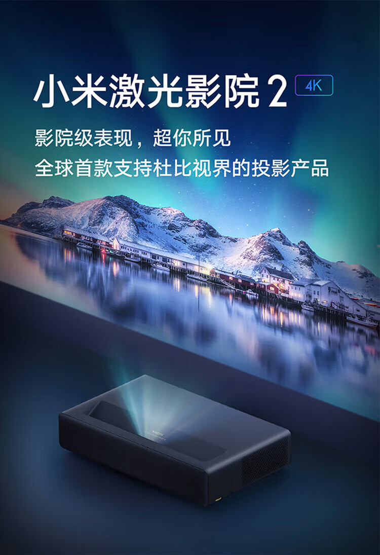 小米激光影院2 4K 100英寸2400ANSI流明杜比全景声ALPD 32点梯形校正家用办公投影仪 小米激光影院2【4K巨幕 豪华享受】
