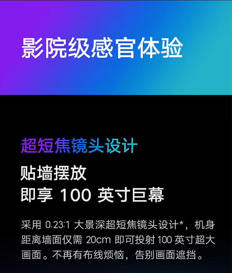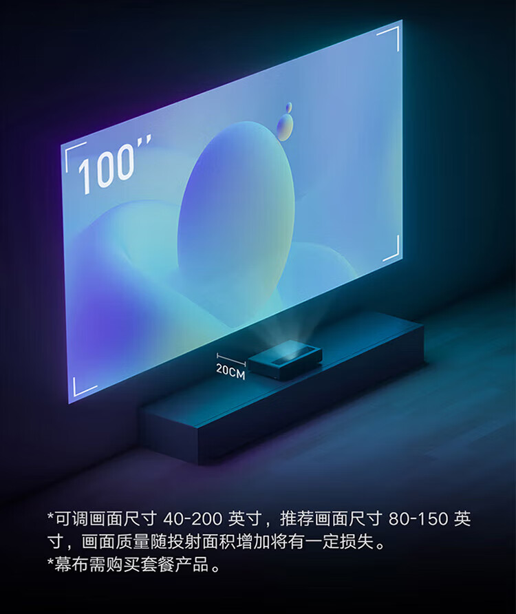 小米(MI)激光家庭影院2 4K超高清100英寸2400ANSI流明杜比全景声ALPD 32点梯形校正超短焦激光投影巨幕电视 激光影院2 4K【短焦近投 4K超清】