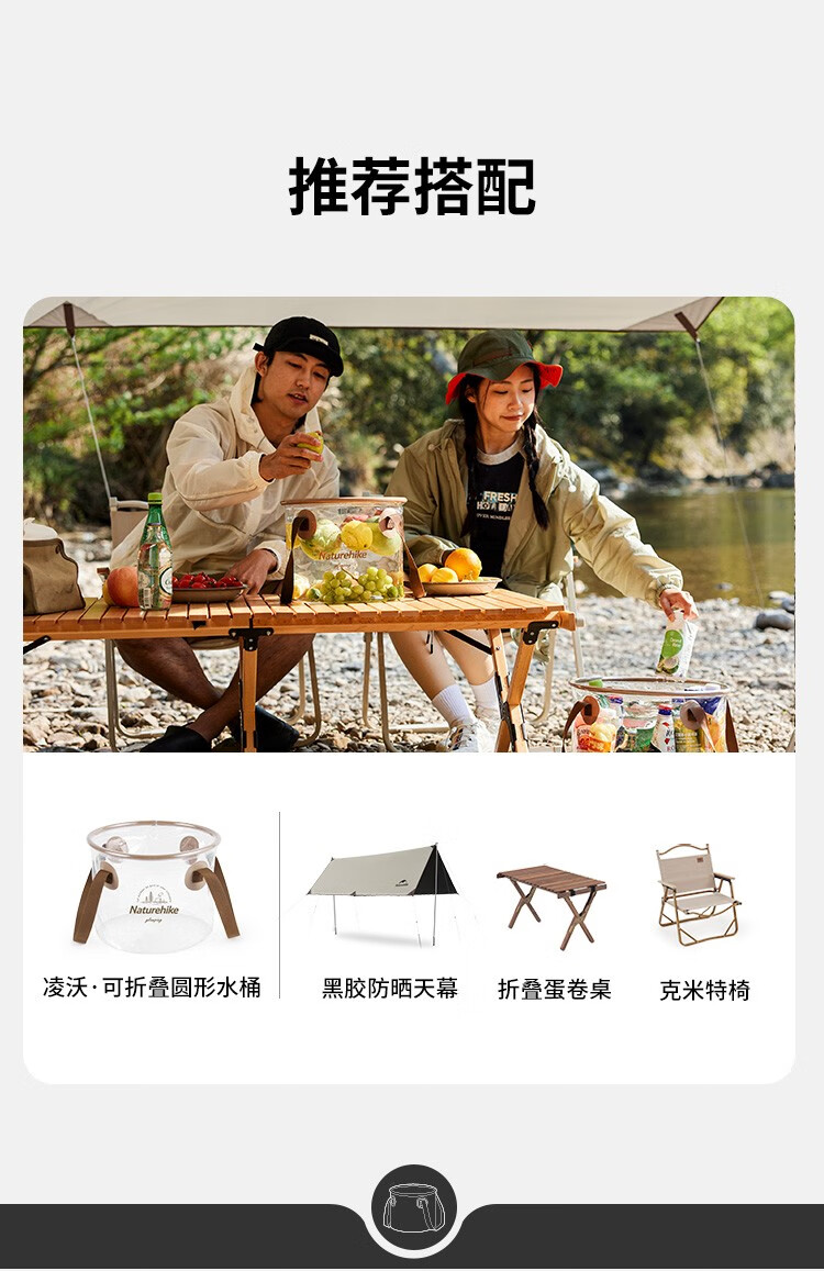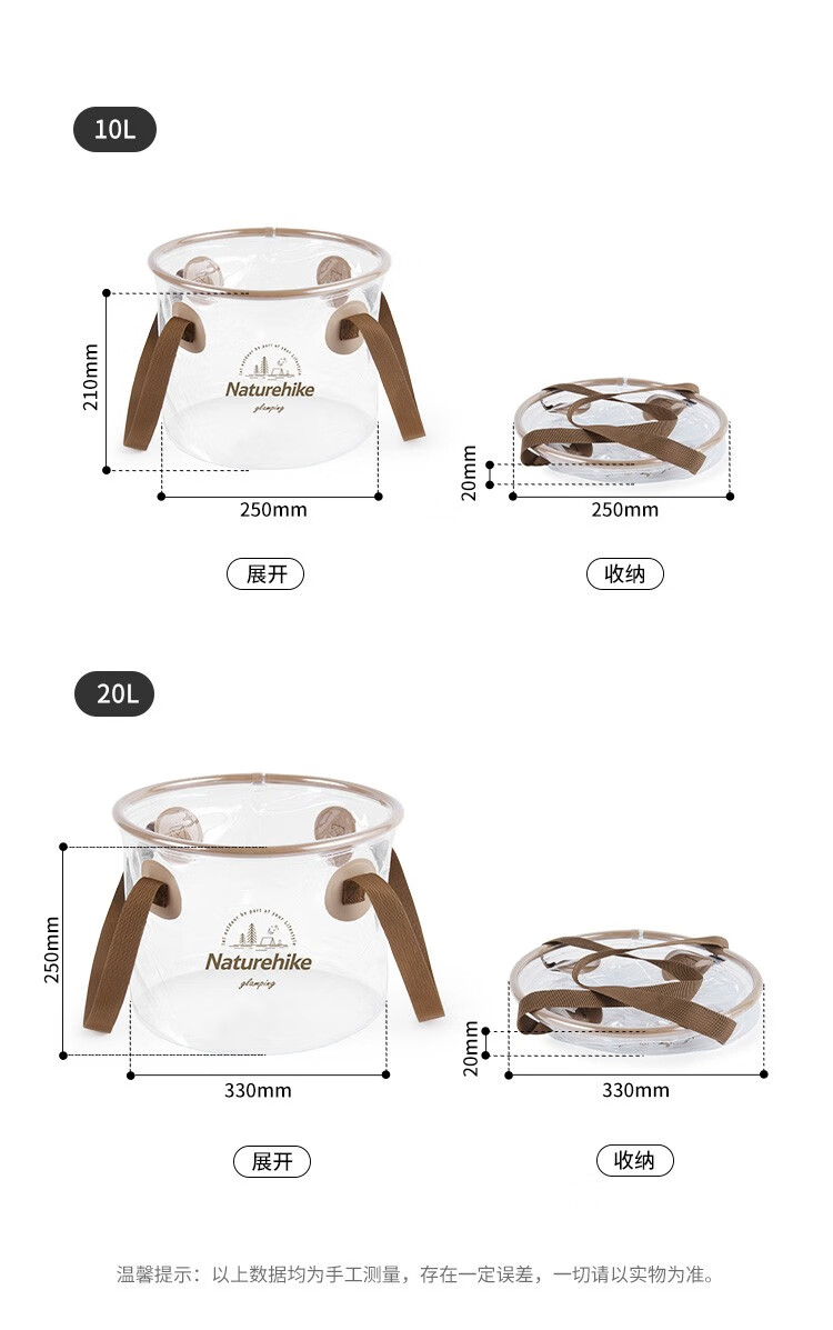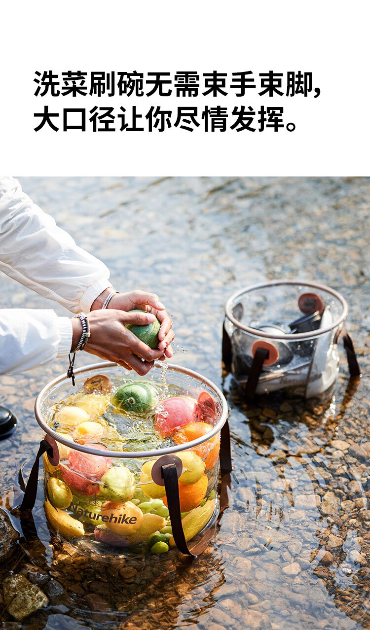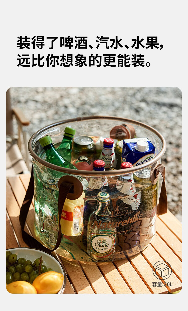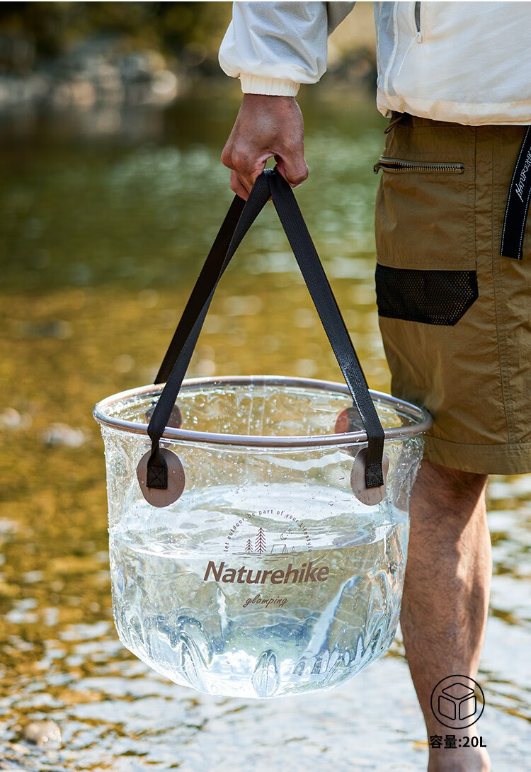 NatureHike挪客可折叠圆形透明水桶便携式户外露营配件水盆野餐多用途储水桶 透明色/10