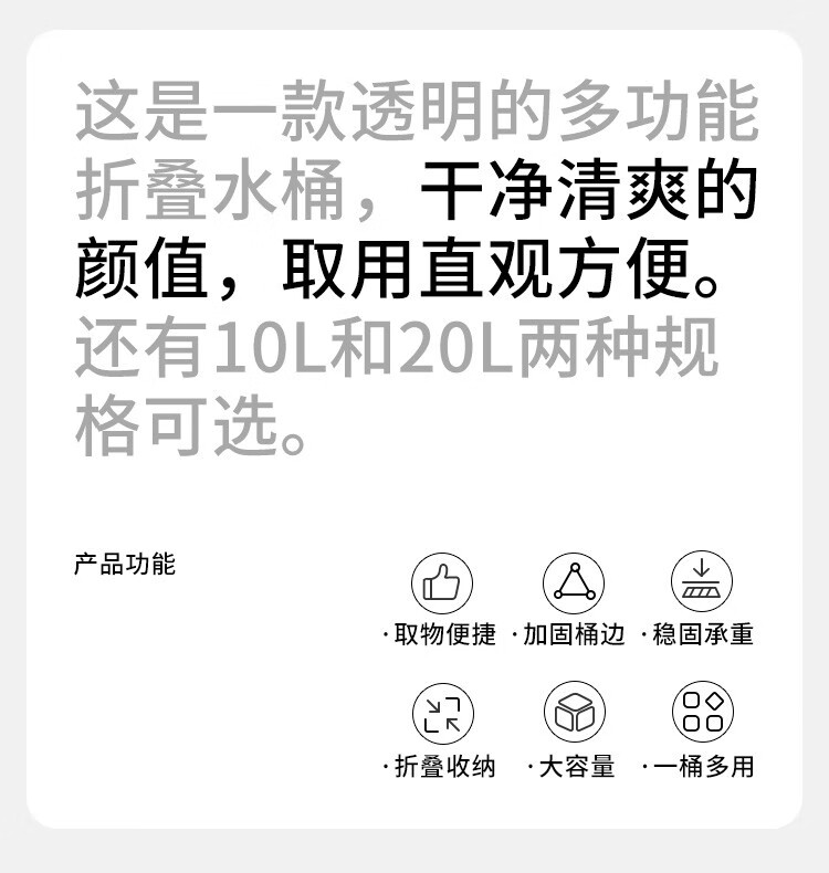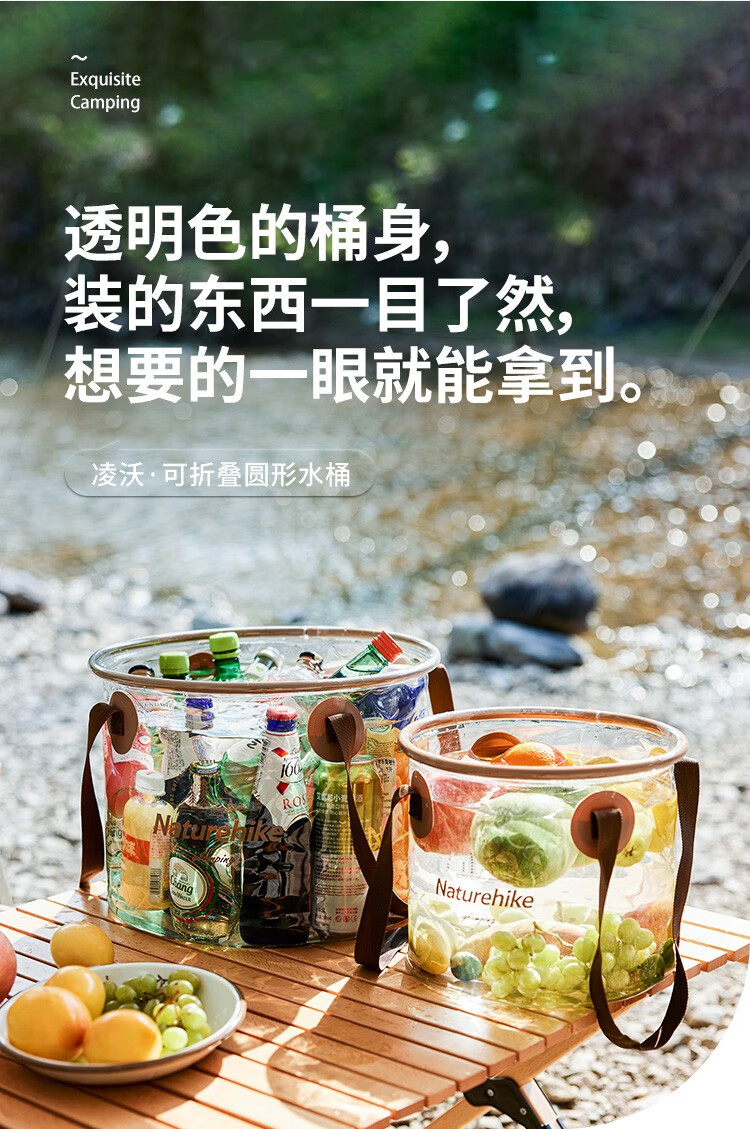 挪客Naturehike凌沃可折叠圆形水桶户外露营储水透明水桶 透明色-10L