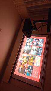 本身投影效果很好,搭配这个幕布,还是很棒的,就是没有提前开槽,所以挂的高,看起来也有点高,要是我挂低一点会更好。不过还是很棒的,影院的感觉已经出来了