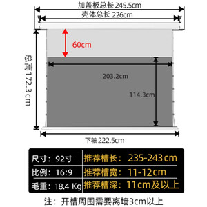 坚果投影三色小白盒AI智能光子悬浮拉线抗光投影幕布8K高清电动升降嵌入隐藏式菲涅尔抗光幕布适用极米当贝 92寸拉线天花幕(悬浮版) 8K超高清三色菲涅尔-AI智能语音联动隐藏嵌入式
