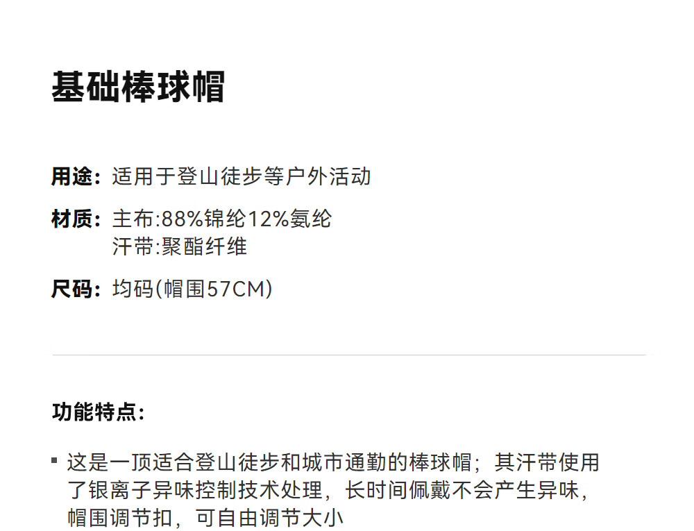 凯乐石(KAILAS)基础棒球帽防晒透气户外运动 钛铁灰 均码