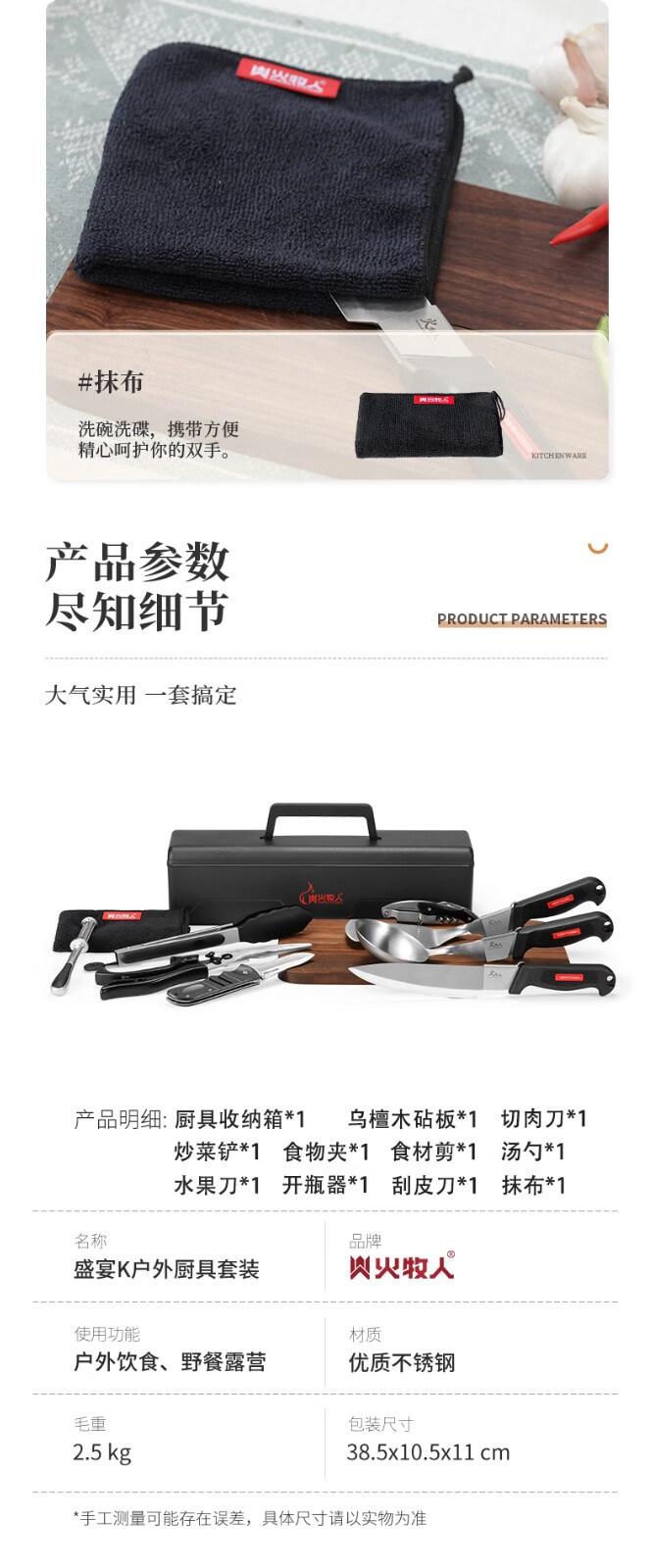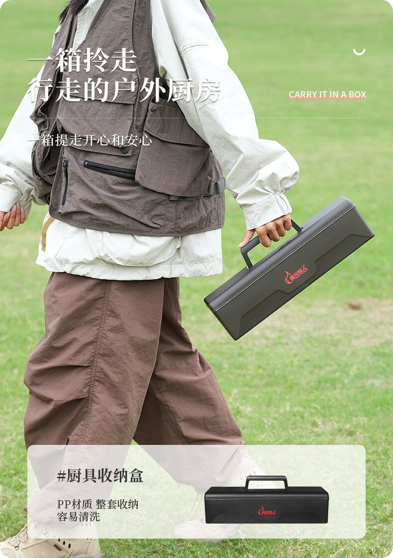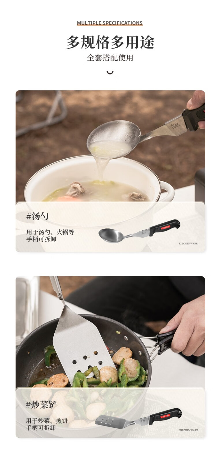 meritcook户外厨具套装露营必备用品不锈钢便携式折叠野炊烧烤刀具汤勺全套 【极速发货】餐具套装