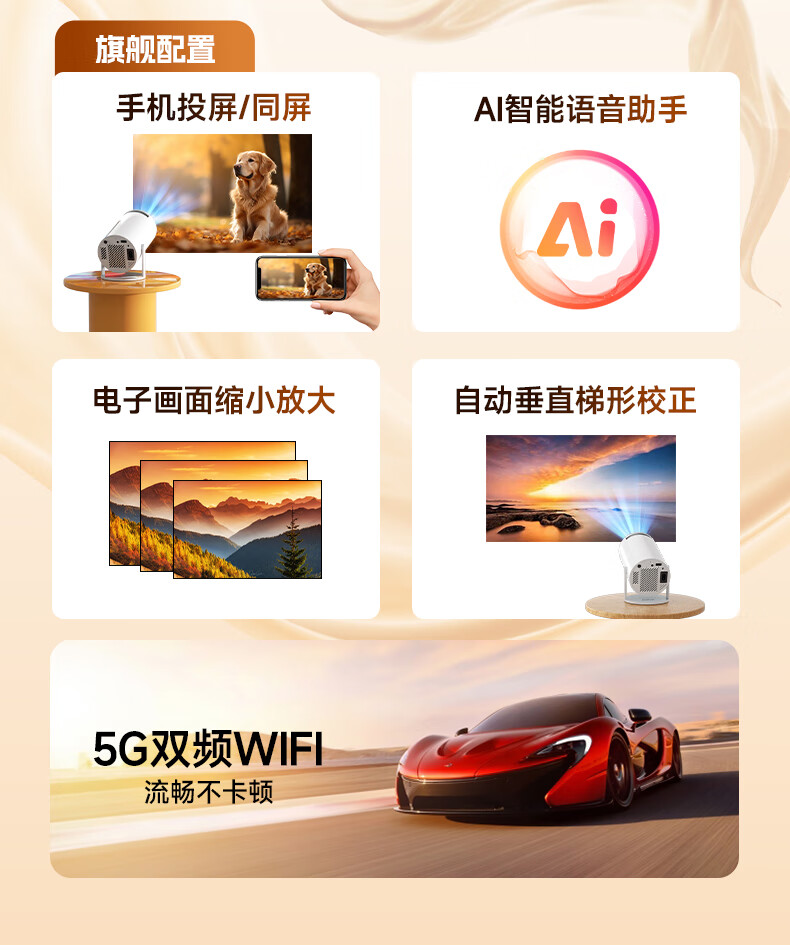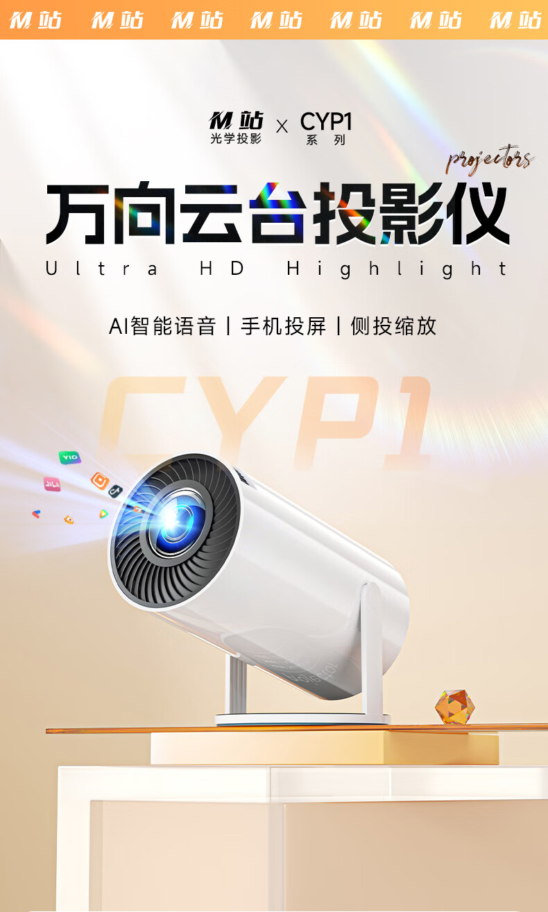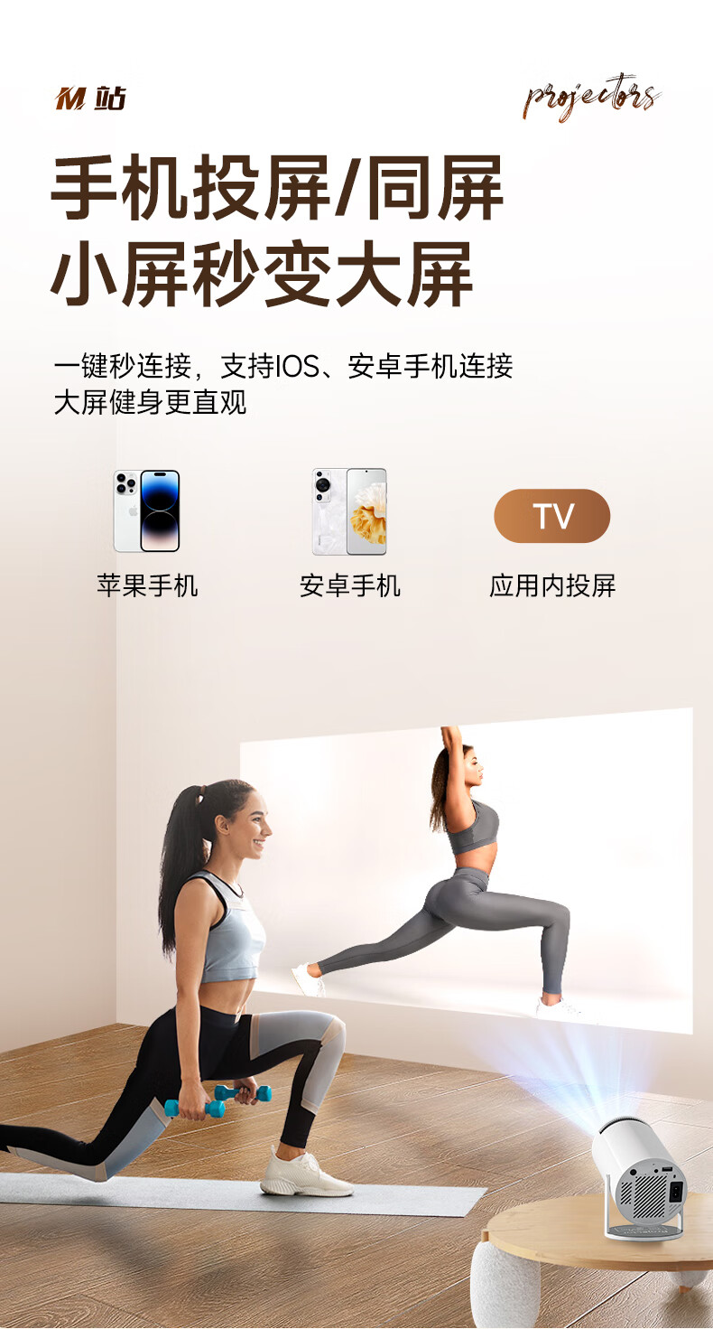 HKMW用2025新款4K超高清云台投影仪家用卧室投墙智能家庭影院小型便携式宿舍学生手机5G 满配Por版【超清XDR+新版满配置+清晰度亮度提