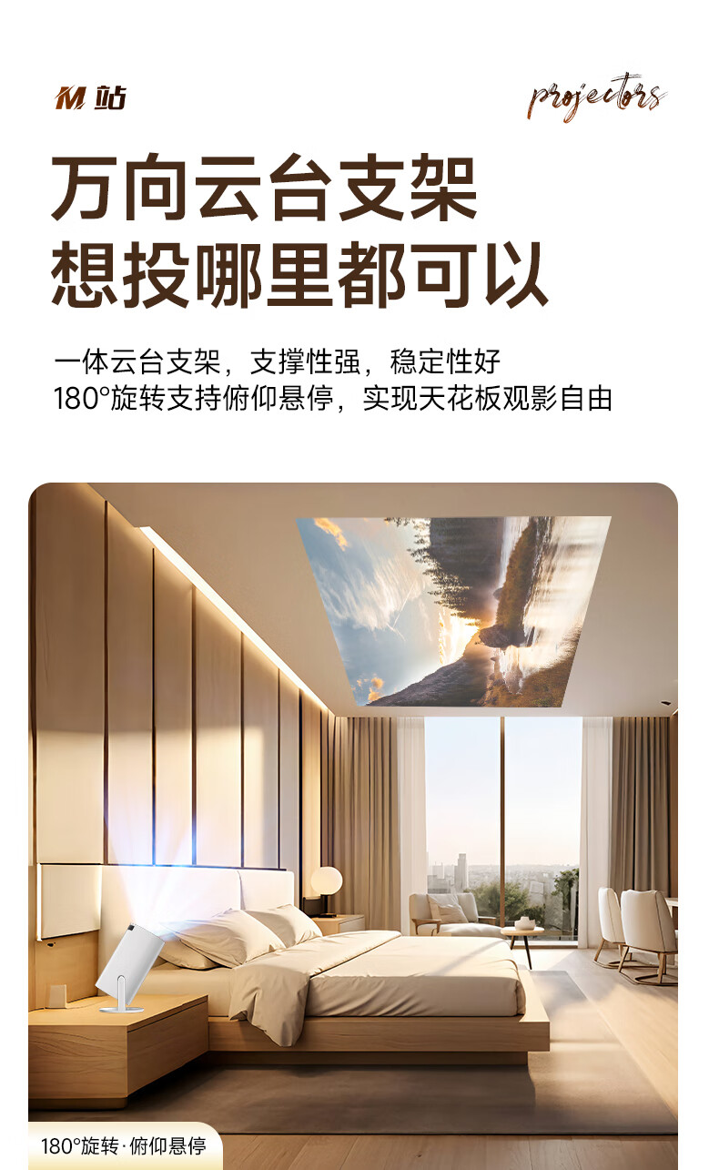 华为机适用2025款投影仪家用超高清4K卧室办公学生宿舍手机投屏5G 2025全新升级[超清万向云台] 观影更方便[360度万向云台]角