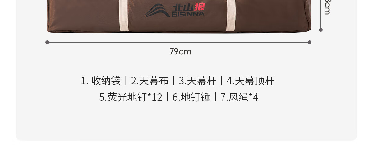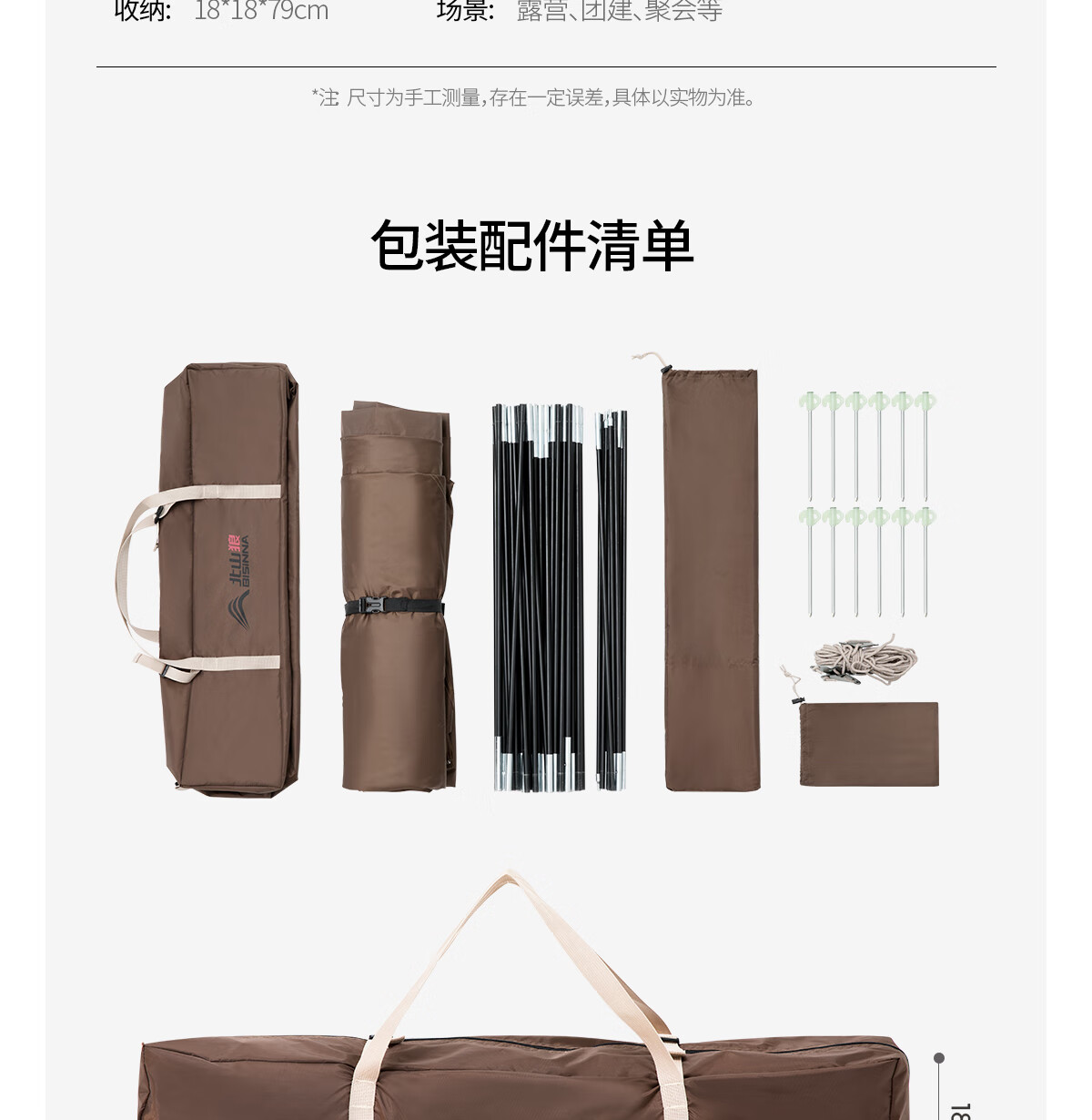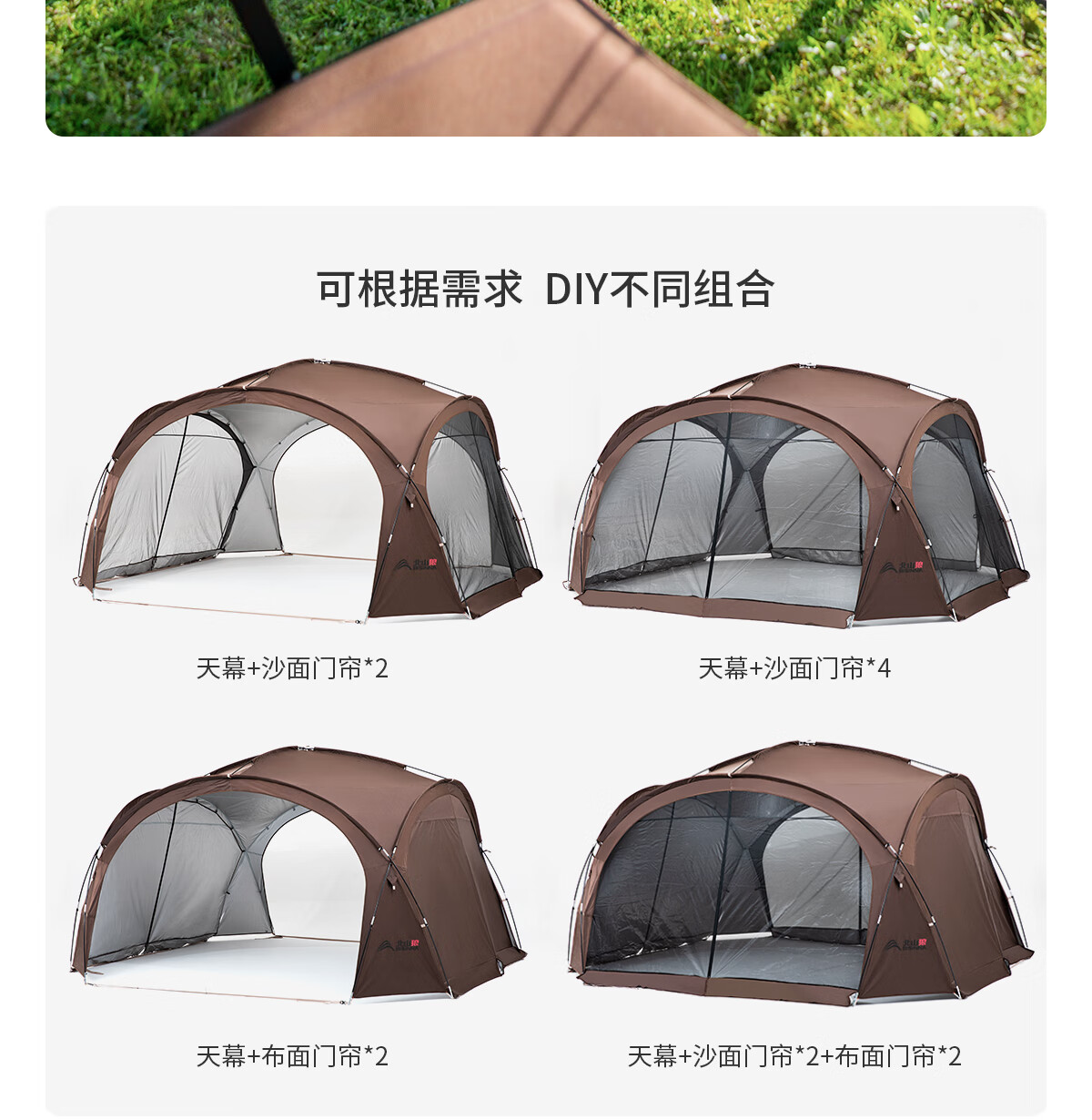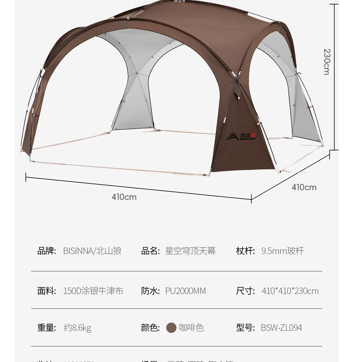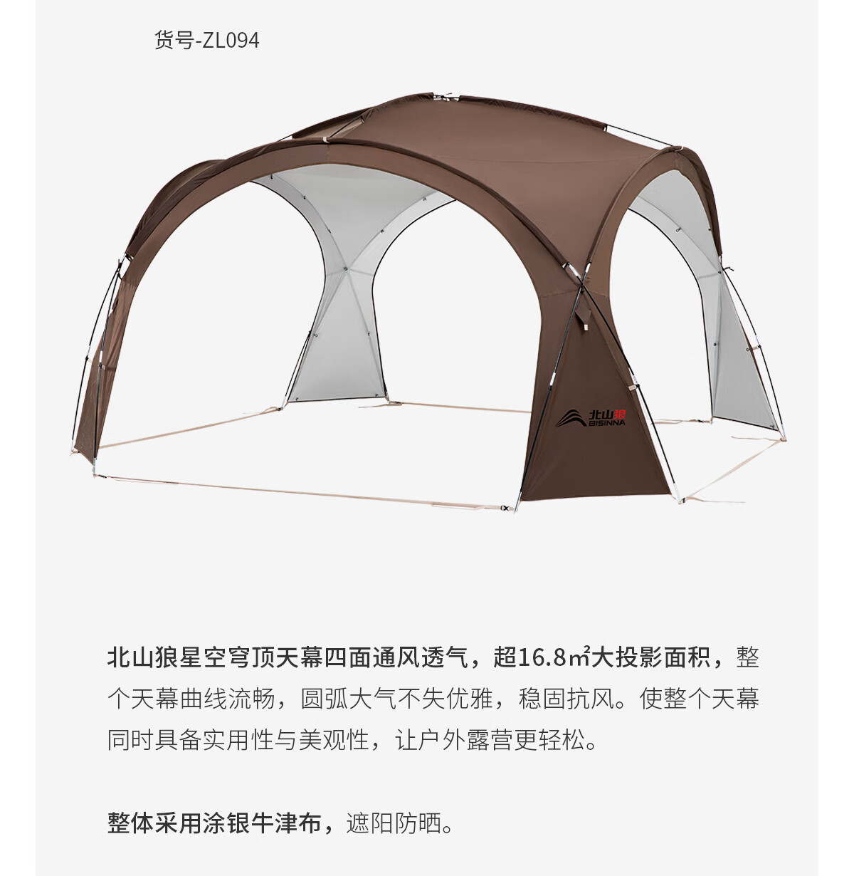北山狼 穹顶天幕户外露营涂银防晒 凉亭超大帐篷防风防水 野营遮阳棚 碳黑大号-布面门帘
