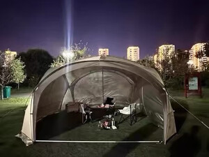 这款帐篷真的太棒了!🌟不仅外观时尚,空间也超级宽敞,一家人在里面活动完全不局促。夜晚在城市灯光下,别有一番风味,户外聚会必备神器!✨安装也很简单,几步搞定!👍