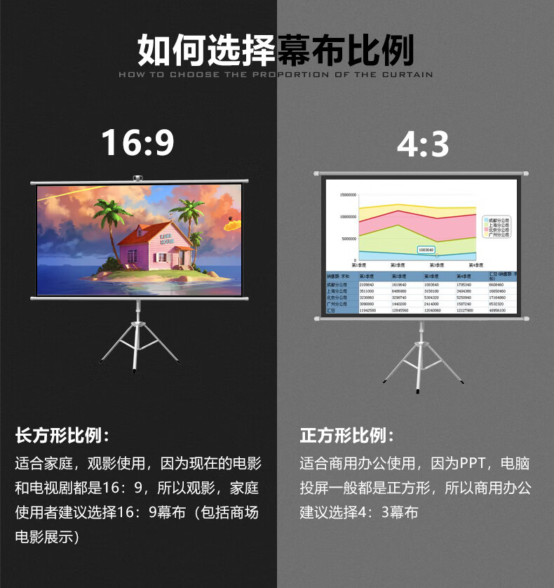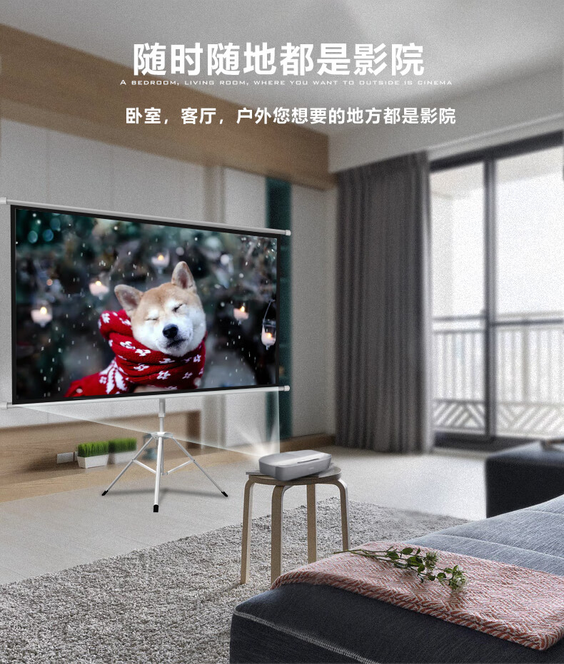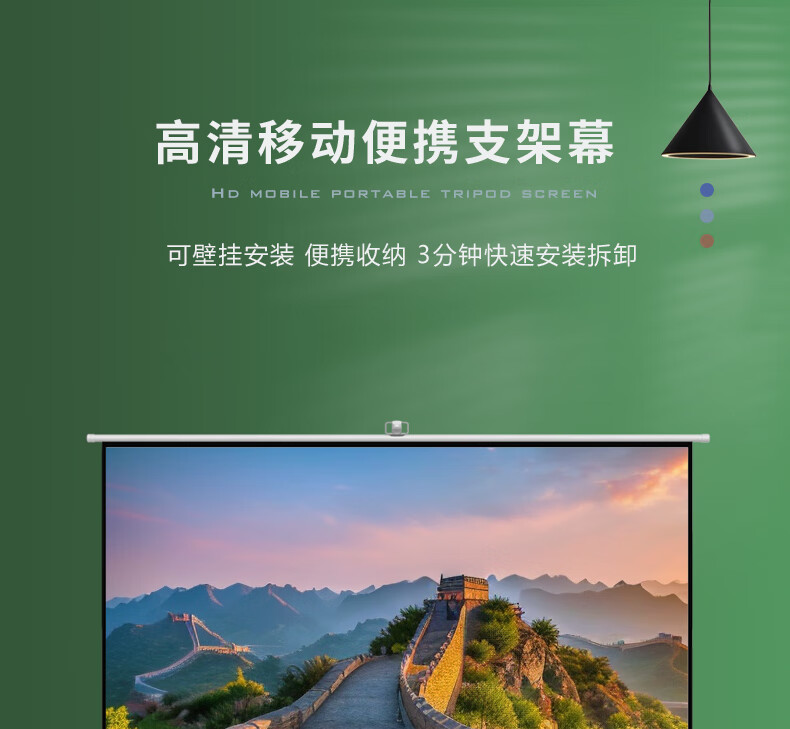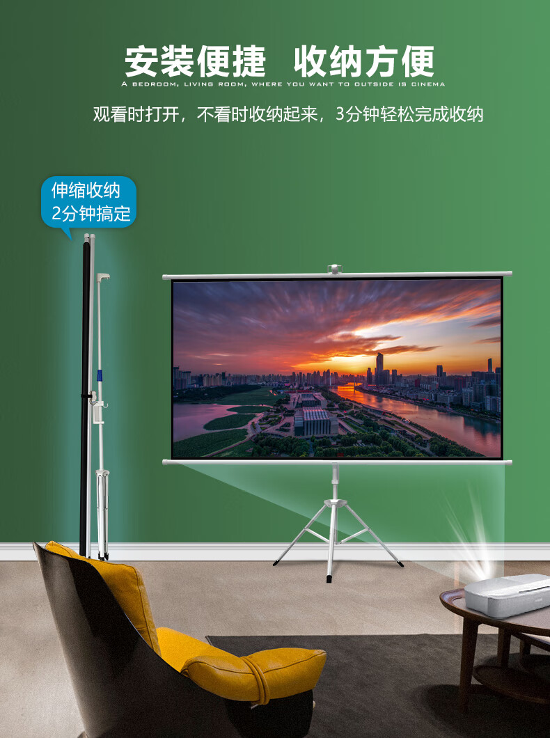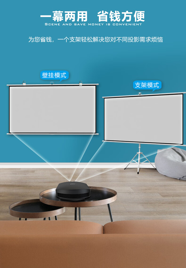 海屏 支架壁挂幕布落地移动投影幕布家用高清免打孔可挂壁简易幕布办公会议幕布户外便捷投影仪屏幕 【72英寸16:9】 高清白塑