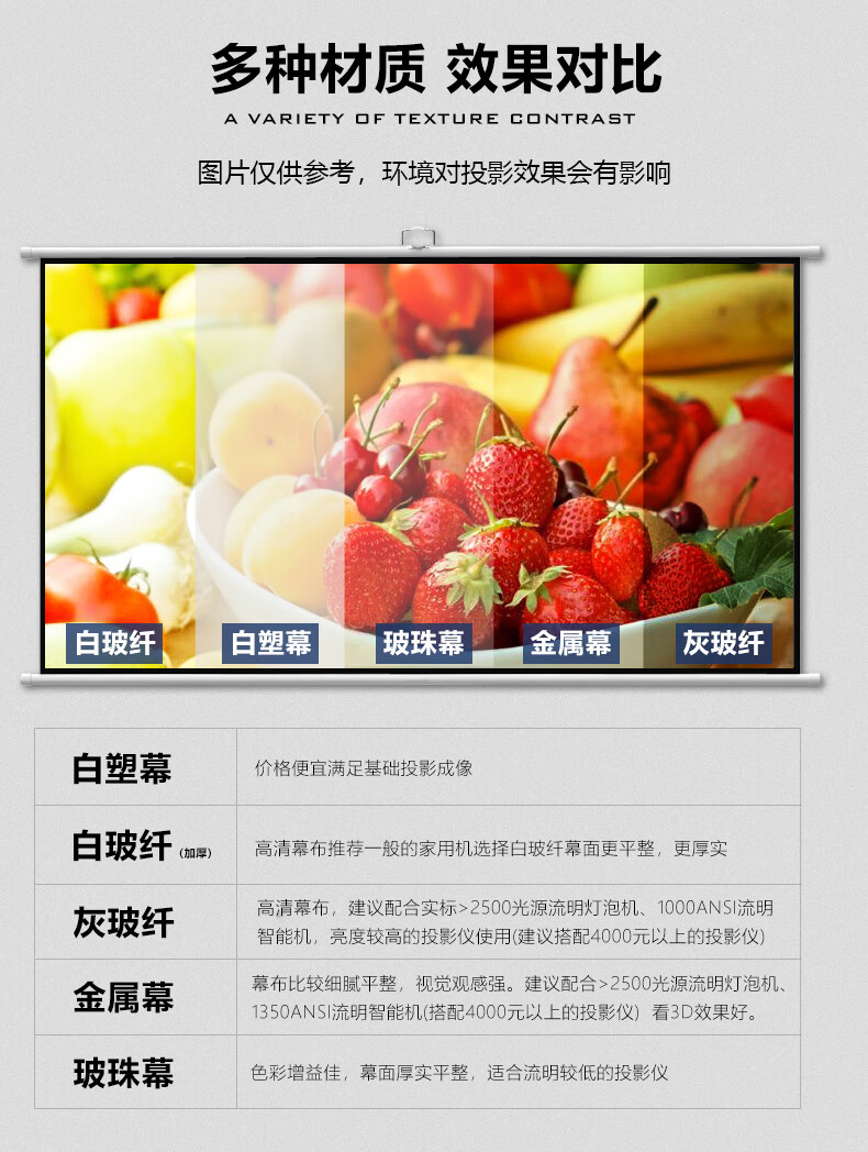 150寸的,就跟巨幕一样,幕布质量很好,安装方便,包装也很专业,幕布包装外面放了一根固定的杆子,幕布一点都没有变形磨损,固定的杆子还让我免费收获成了一个户外晒衣杆😁这个价位真的很实惠,十分好评,推荐推荐