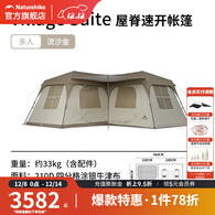 挪客Naturehike屋脊速开帐篷三室两厅大空间涂银防晒防雨户外露营 流沙金