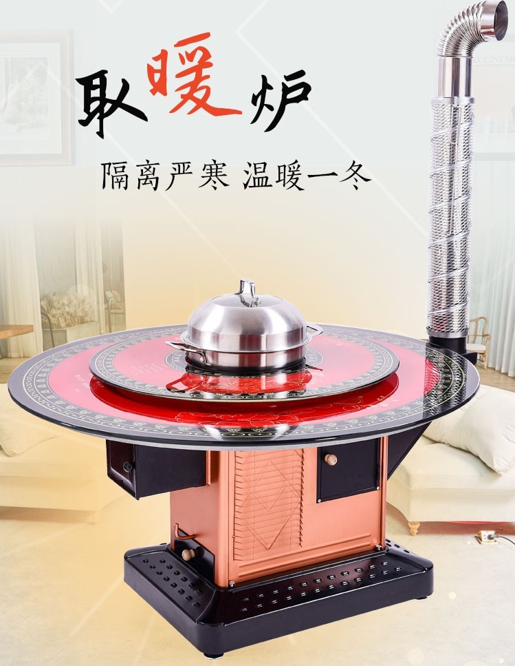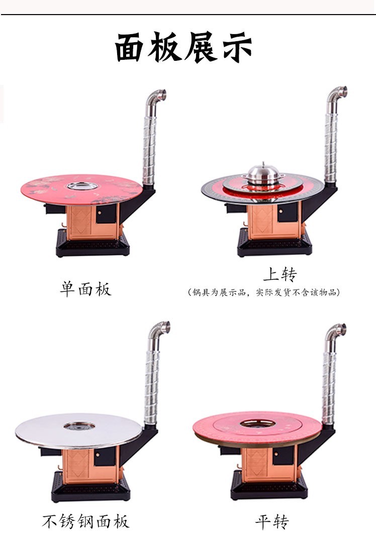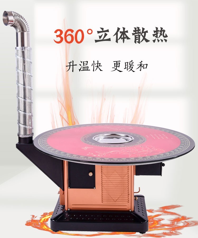 【送货上门】昊燃·取暖炉农村冬季新款气化炉室内烤火 加厚柴煤两用多功能转盘节能无烟采暖炉回风炉 1米加厚防爆玻璃单桌面 (柴煤两用)