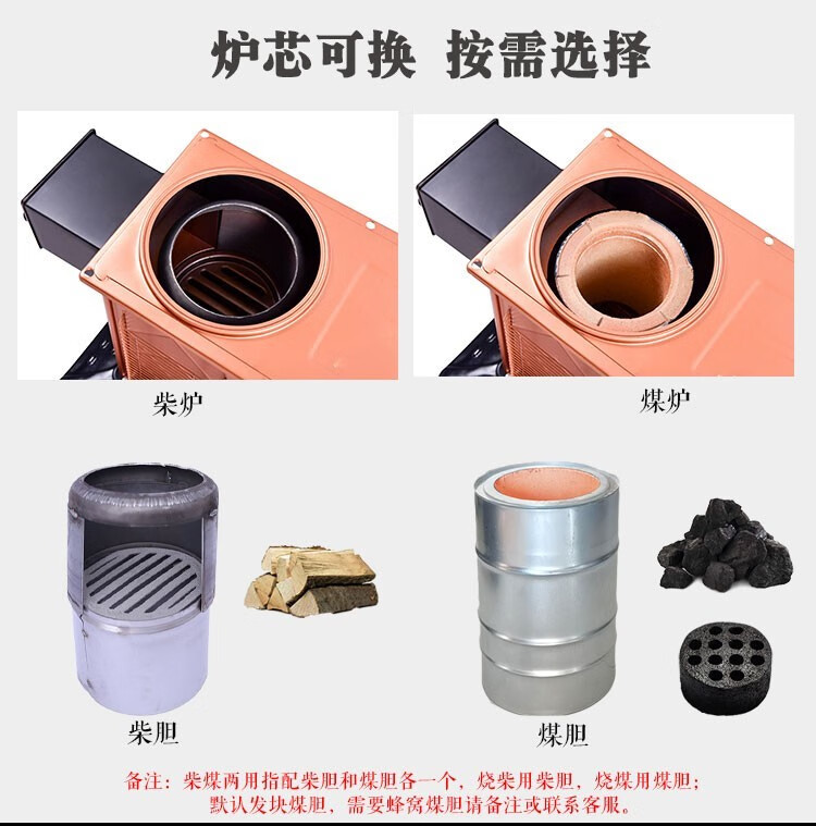 好厨官农村取暖炉冬季家用回风炉柴火灶室内柴煤两用无烟节能柴火采暖炉 1米不锈钢丨单桌面丨柴煤两用