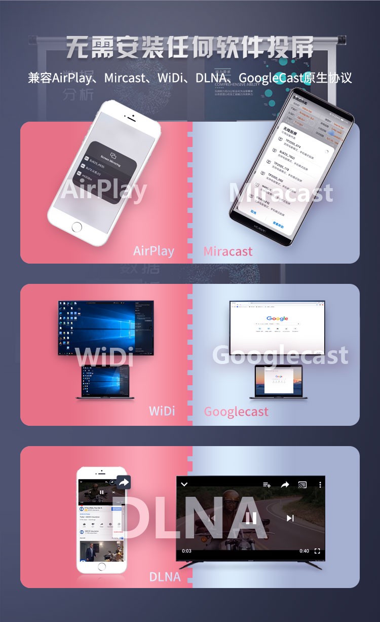 投屏设备非常好,能够自定义壁纸,功能多样化,,能够满足我们的投屏要求。