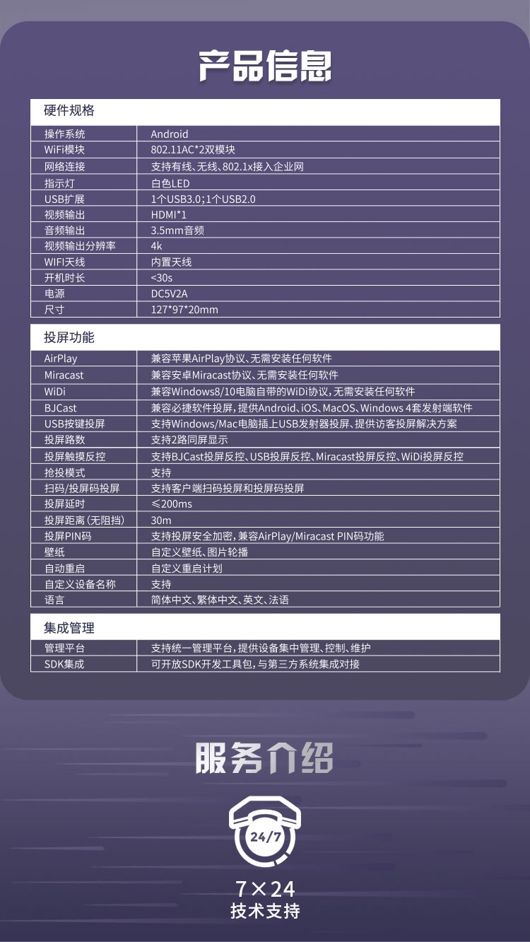 专业投屏器效果非常好,不会像那种几百块钱的经常卡顿,非常适合各个大小企业使用,售后也是非常棒,使用上有什么不懂的地方都会耐心指导!五星推荐!