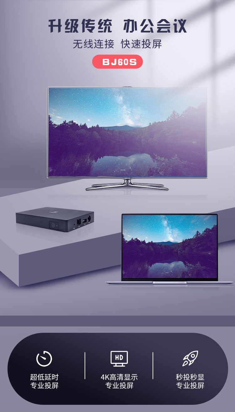 必捷互联无线投屏器 手机电脑无线投屏电视投影仪 企业办公 信息发布 4k高清 国产操作系统投屏 BJ60S 单机版