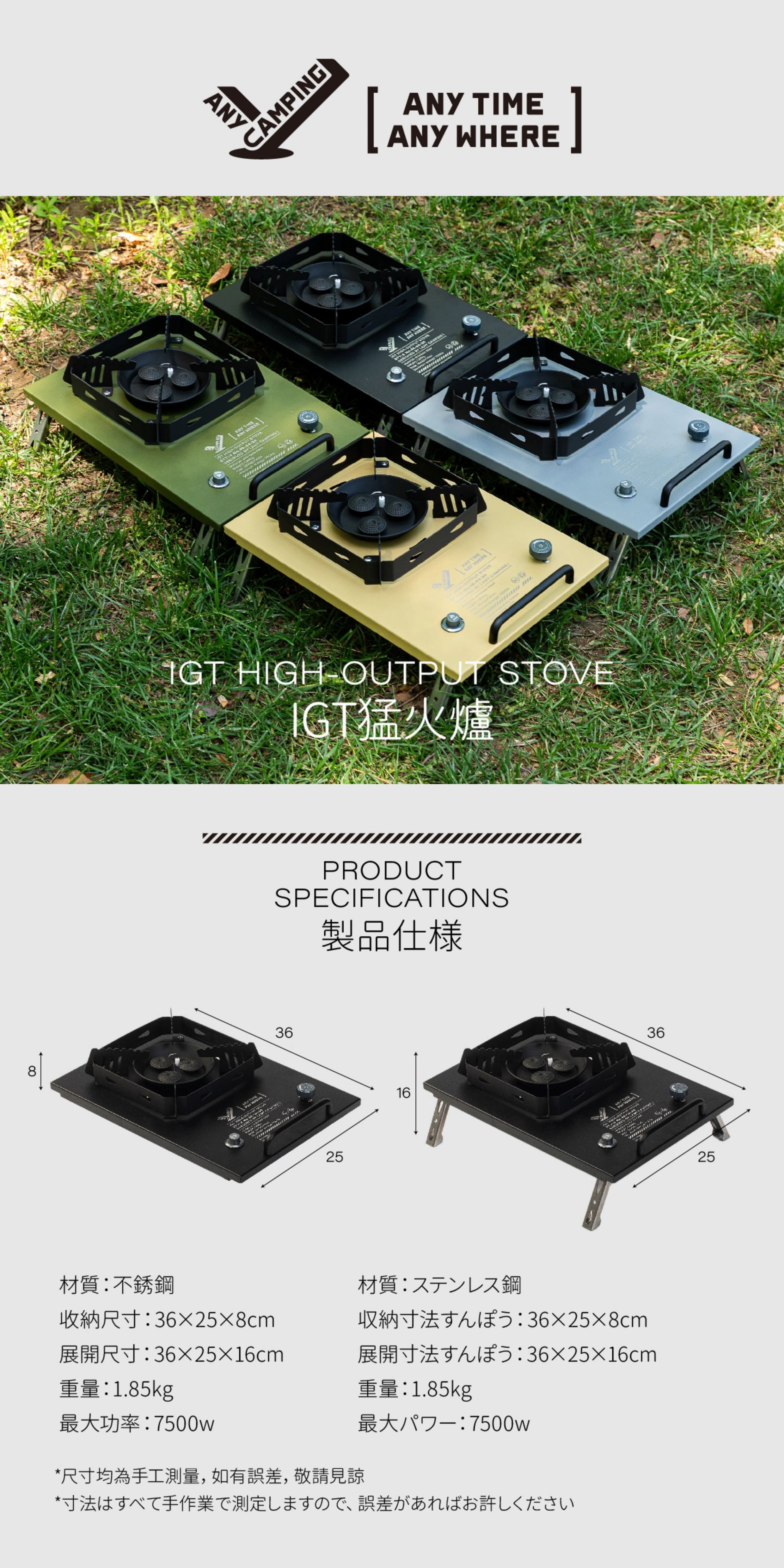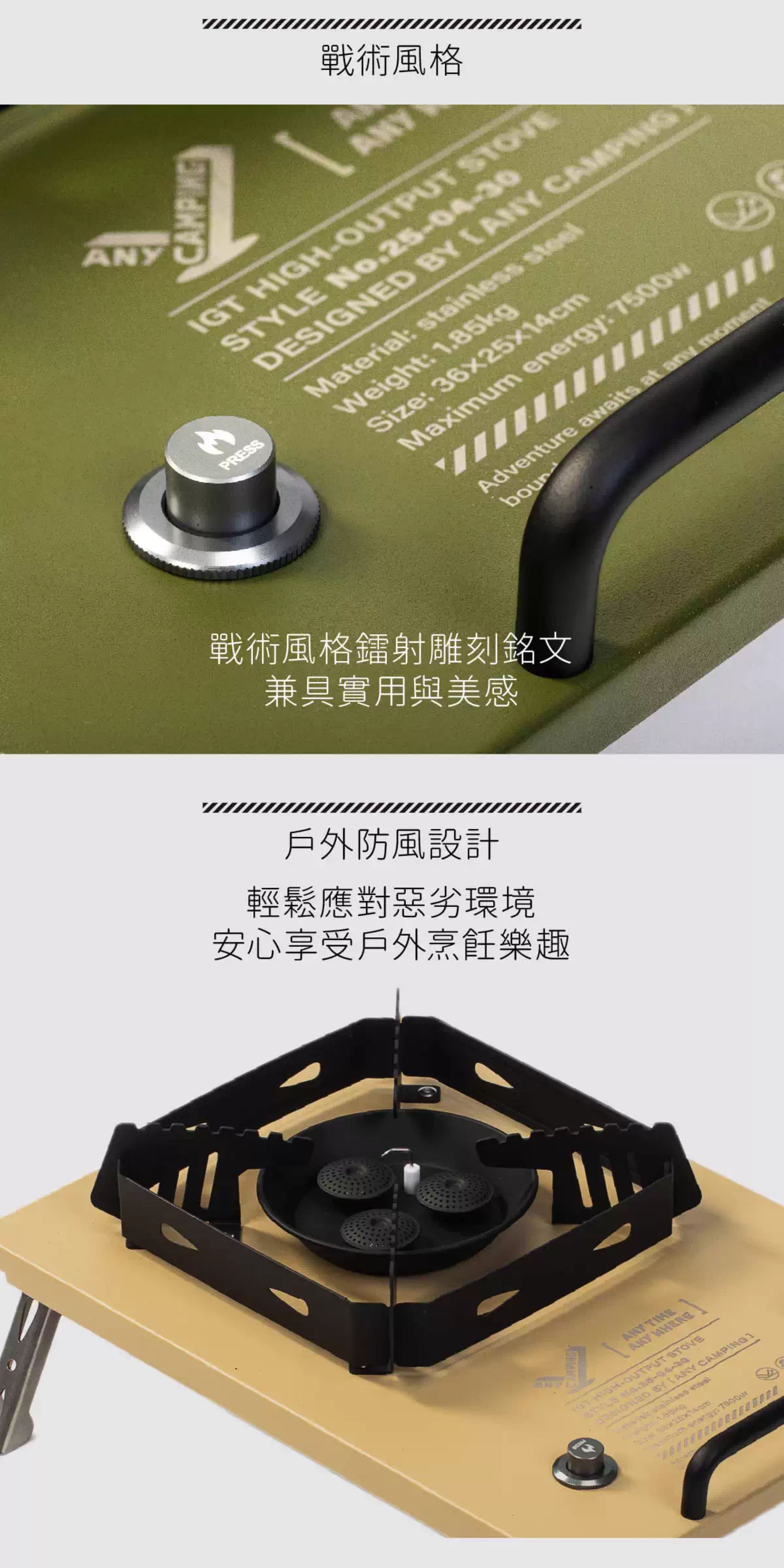 ANY CAMPING【无界露营】一单元IGT猛火炉户外野营烹饪煮茶便携分体式燃气灶 "无界"一单元猛火炉(黑色)